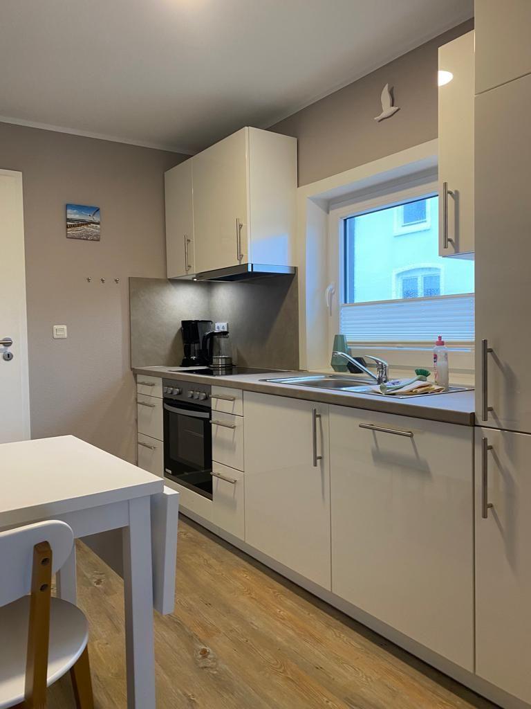 Helle Räume, natürliche Materialien und liebevolle Details prägen das Wohngefühl. Der offen gestaltete Wohnbereich mit gemütlicher Sofaecke ist ein Ort zum Zurücklehnen – nach einem Strandtag, bei einem Glas Wein oder mit einem guten Buch. Der Essplatz fügt sich selbstverständlich in den Raum ein und lädt zu gemeinsamen Mahlzeiten ein. Die moderne Küche ist vollständig ausgestattet und bietet alles, was es für eine unkomplizierte Selbstversorgung braucht.