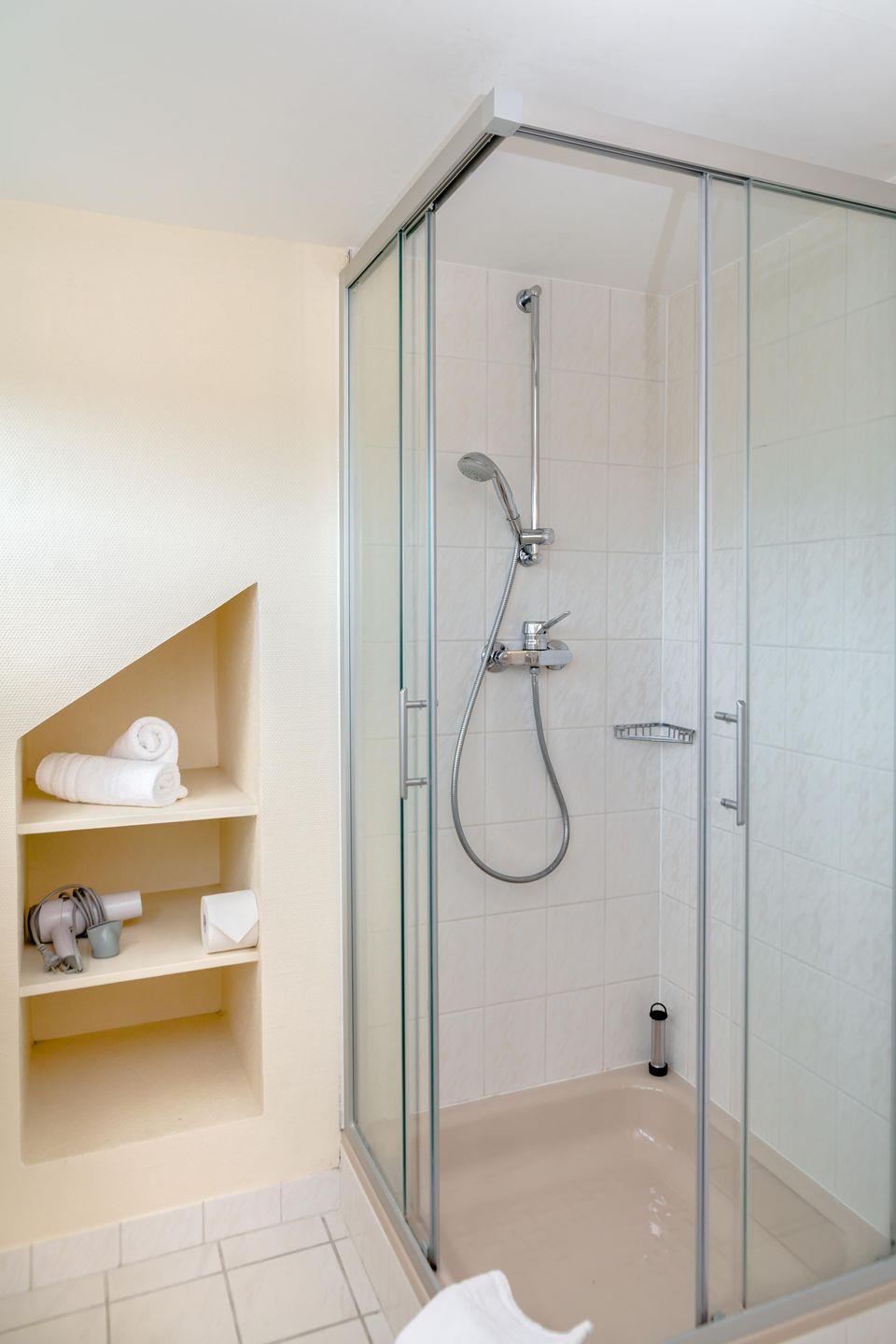 Das Schlafzimmer mit Doppelbett liegt angenehm ruhig und bietet ausreichend Stauraum. Das Badezimmer ist hell gestaltet und sorgt mit Tageslicht für einen frischen Start in den Tag.
