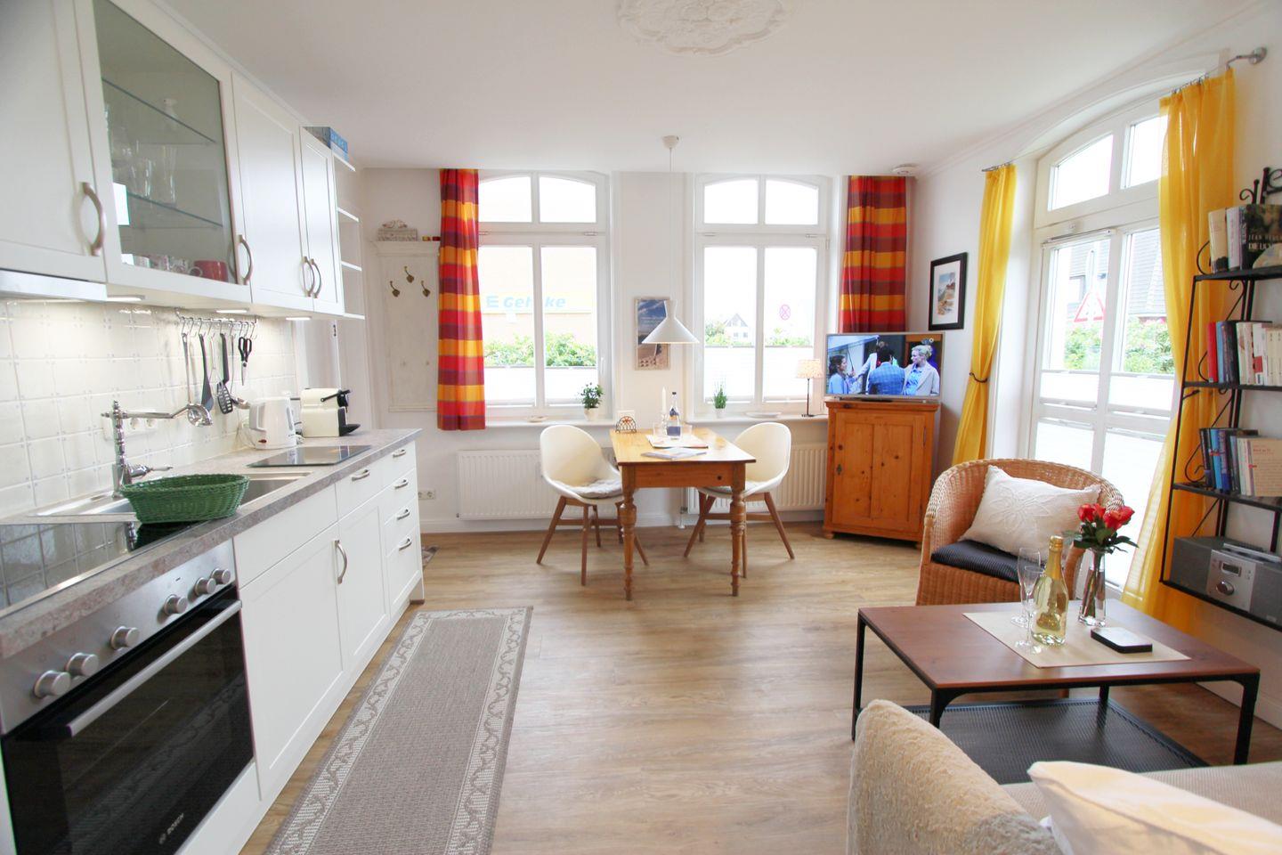 In einem Bäderstilhaus aus dem Jahre 1898 befindet sich diese gemütliche und gepflegte 2-Zimmer Wohnung, ebenerdig, mit Zugang in einen idyllischen eigenen Gartenanteil und nur 200 m bis zum Strandübergang. Ein Lebensmittelmarkt, der Fahrradverleih, sowie unterschiedliche Restaurants sind ''fast vor der Haustür''. Ein Spaziergang zum Dorfteich dauert nur wenige Minuten. Zu diesem Ferienappartement gehört kein eigener Pkw-Stellplatz!