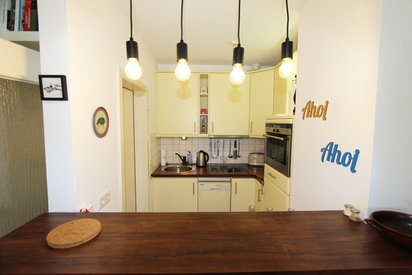 In dem offenen Küchenbereich können Sie nach Herzenslust kochen und Ihr Lieblingsgericht zubereiten. Der gemütliche Essensplatz grenzt an den Wohnbereich an.