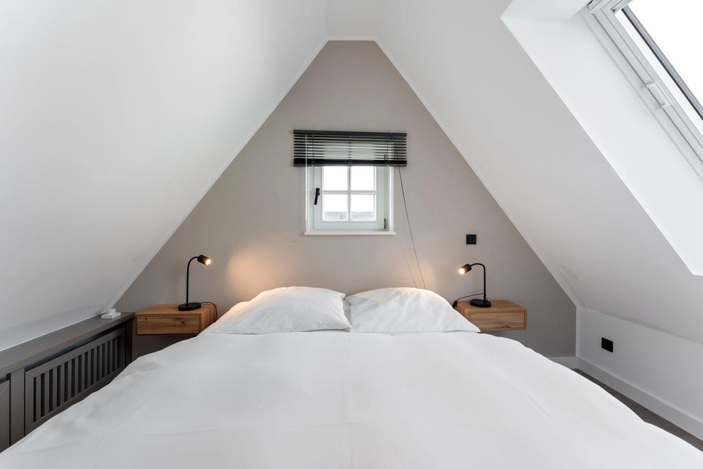 Das Schlafzimmer mit komfortablem Doppelbett (160x200 cm) ist eine kleine Wohlfühloase. Die geschmackvolle Einrichtung sorgt für eine angenehme Nachtruhe. Im angrenzenden, geräumigen Badezimmer mit moderner Dusche starten Sie erfrischt und energiegeladen in den Tag.