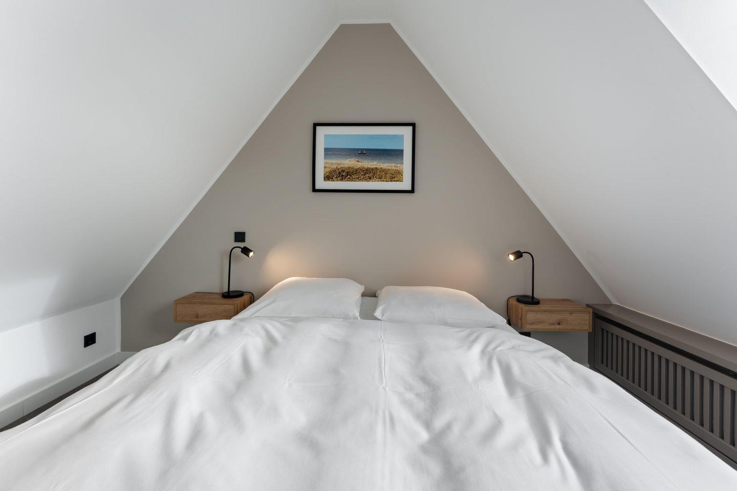 Das separate Schlafzimmer ist mit einem komfortablen Doppelbett (160x200 cm) ausgestattet und lädt nach einem langen Strandtag zum Ausschlafen und Träumen ein.