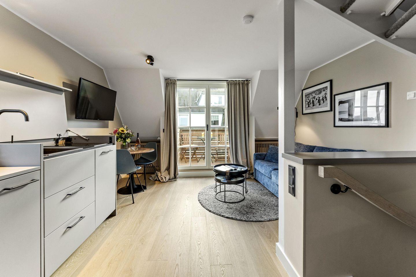 Diese charmante Ferienwohnung auf zwei Ebenen ist der ideale Rückzugsort für Paare oder Alleinreisende, die Sylt in vollen Zügen genießen möchten. Mit stilvollem, urbanem Design und durchdachter Ausstattung bietet sie auf ca. 46 qm alles, was das Urlaubsherz begehrt – inklusive Balkon mit seitlichem Meerblick und fußläufiger Nähe zum Strand.