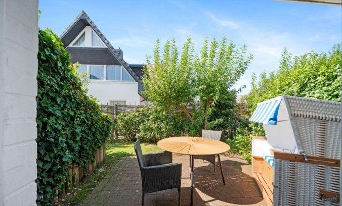 Draußen lädt die Terrasse mit Strandkorb dazu ein, zwischendurch innezuhalten – ein Platz für den ersten Kaffee, ein paar ruhige Minuten oder ein Glas Wein am Abend. Die Nordseeluft ist hier immer präsent. Auch ein gut erzogener Hund ist nach Absprache willkommen, sodass gemeinsamen Auszeiten nichts im Wege steht. Ein eigener Parkplatz direkt am Haus sorgt für entspanntes Ankommen.
