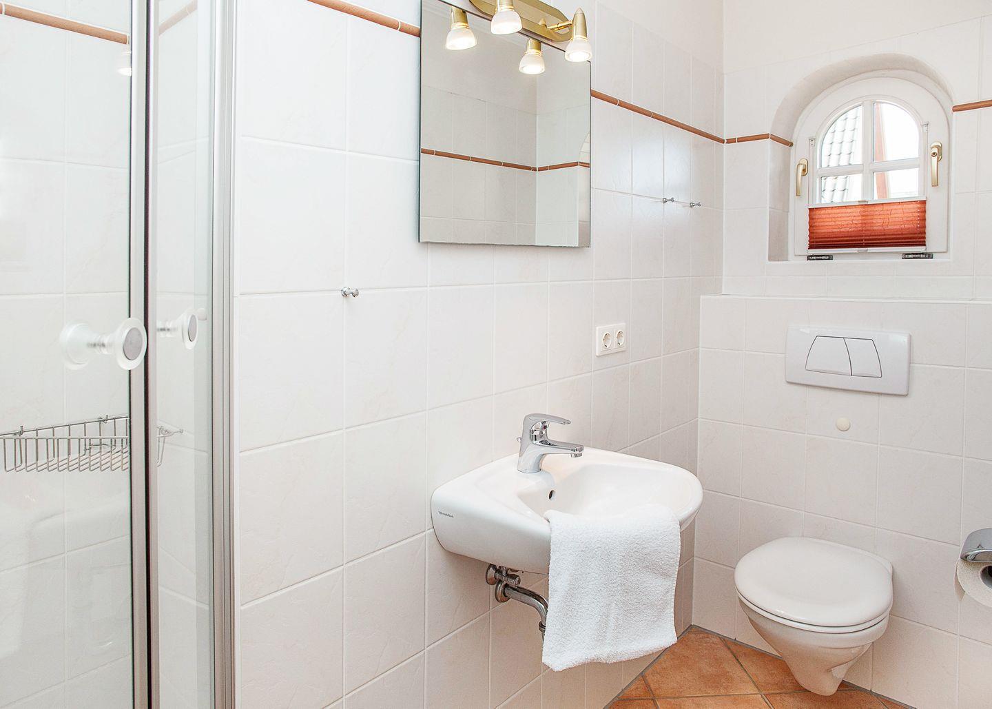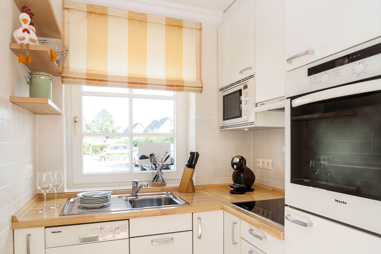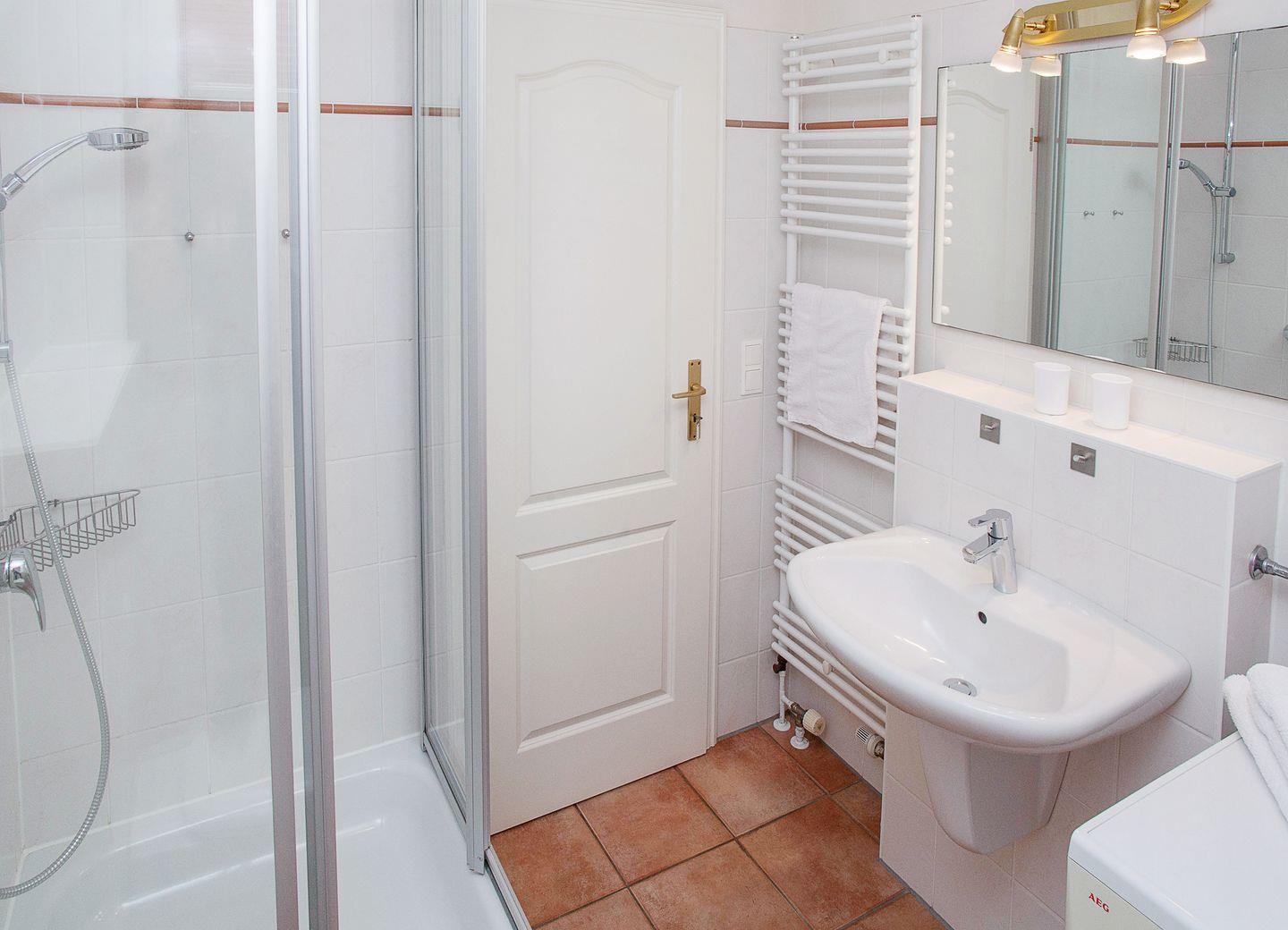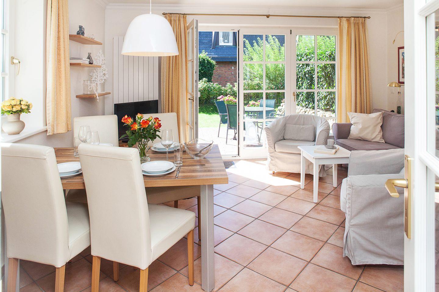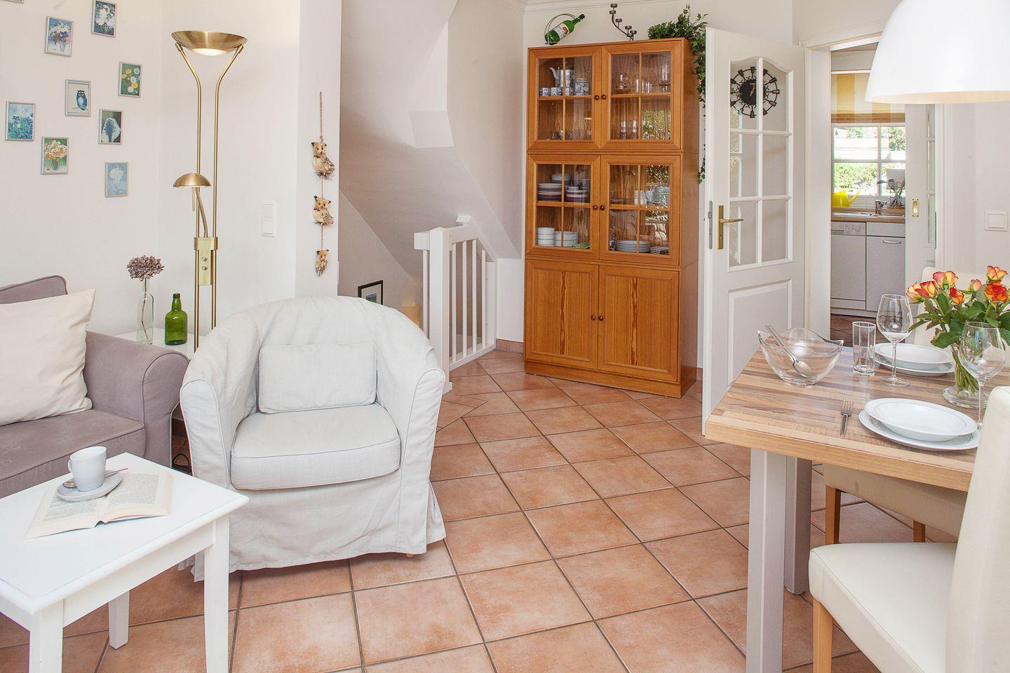 im Erdgeschoss befindet sich der helle und großzügig geschnittene Wohnbereich mit Esstisch, Couch sowie Ausgang auf die hübsche Terrasse (Süden). Die kleine Küche ist bestens ausgestattet und lädt zum Kochen ein. Ebenfalls im Erdgeschoss befindet sich auch eins der beiden Duschbäder. Im Souterrain gibt es zwei Schlafzimmer mit einem Doppel- bzw. zwei Einzelbetten sowie noch ein weiteres Duschbad.