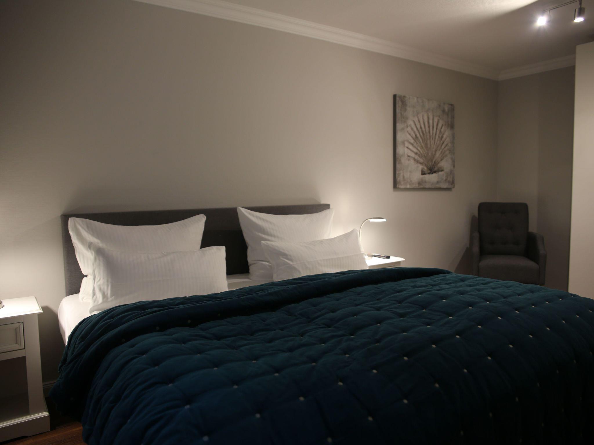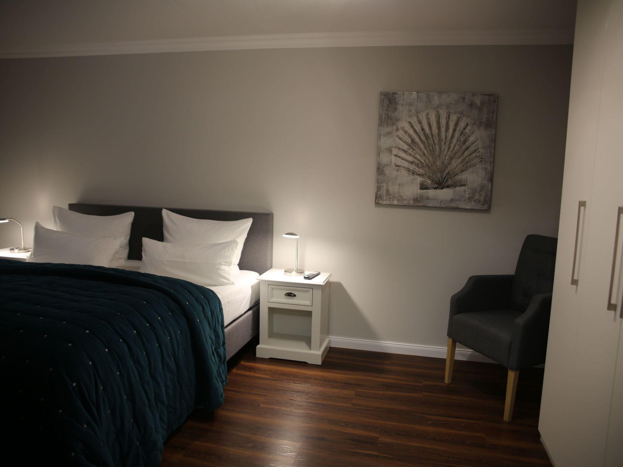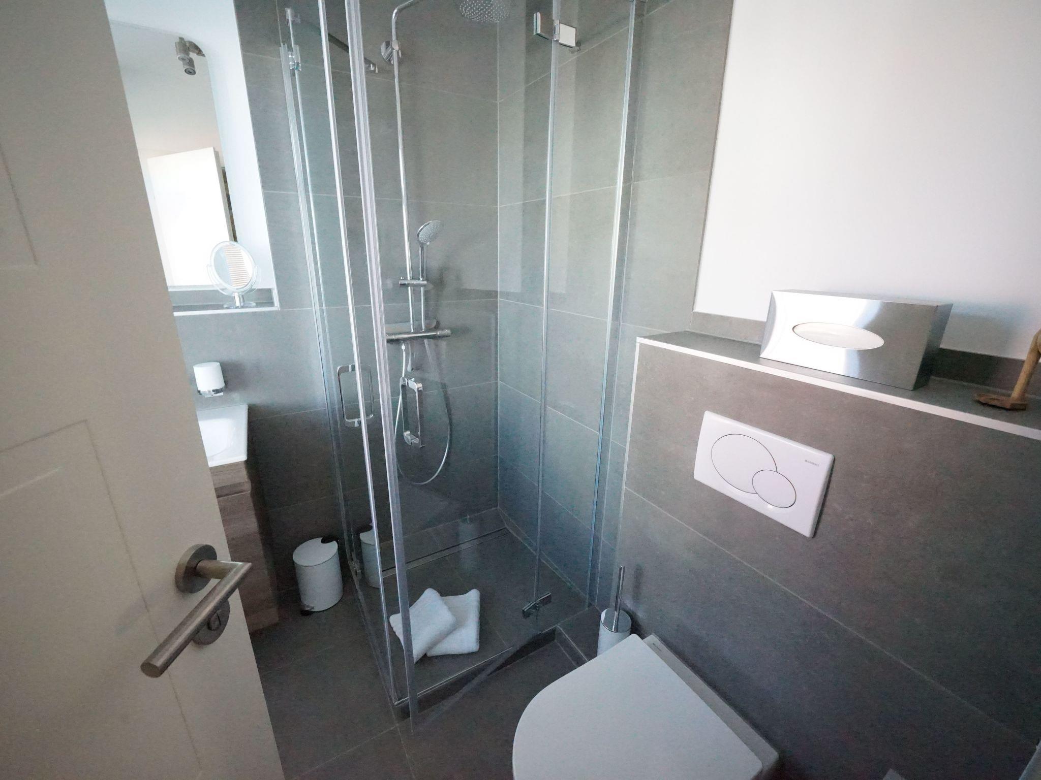 Inside the flat, two bathrooms with shower and WC as well as an additional bathtub ensure comfort and convenience. A pod coffee machine, kettle, dishwasher and ceramic hob form the basis for home-cooked meals. The equipment is complemented by a microwave with grill function. Communal facilities such as a washing machine and tumble dryer are available in the building and offer additional comfort for your stay.