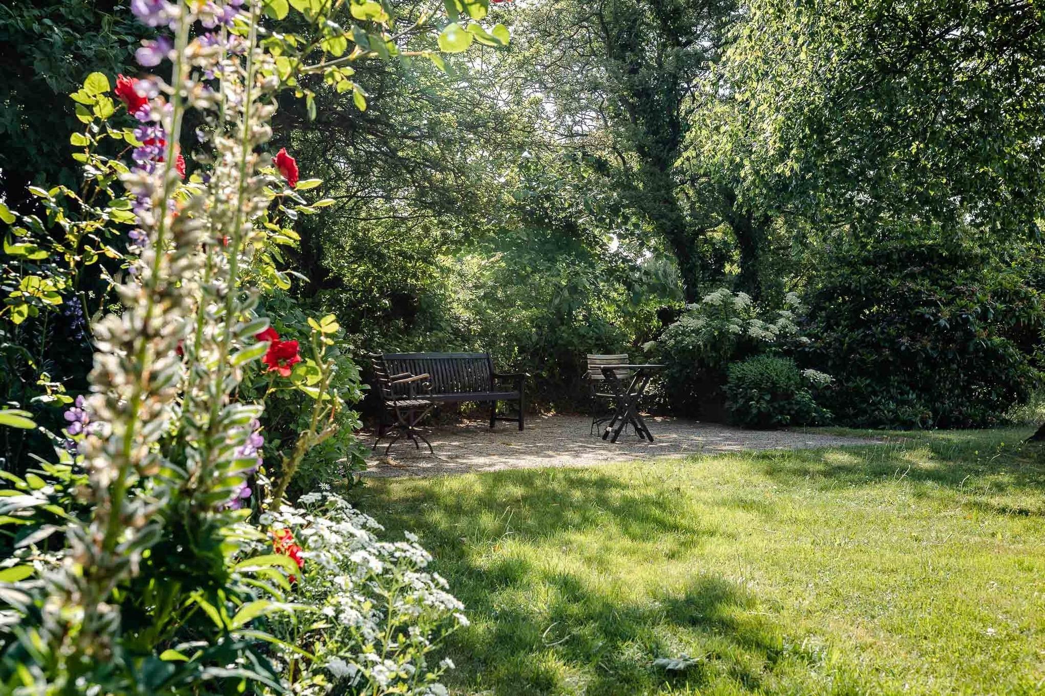 Ein echtes Highlight ist der eigene Sitzbereich im Garten, der direkt an den gemeinschaftlichen, liebevoll bepflanzten Garten grenzt. Mit Gartenmöbeln ausgestattet, genießen Sie hier Privatsphäre, Vogelgezwitscher und den Blick ins Grüne. Waschmaschine und Trockner stehen im Gartenhäuschen bereit.