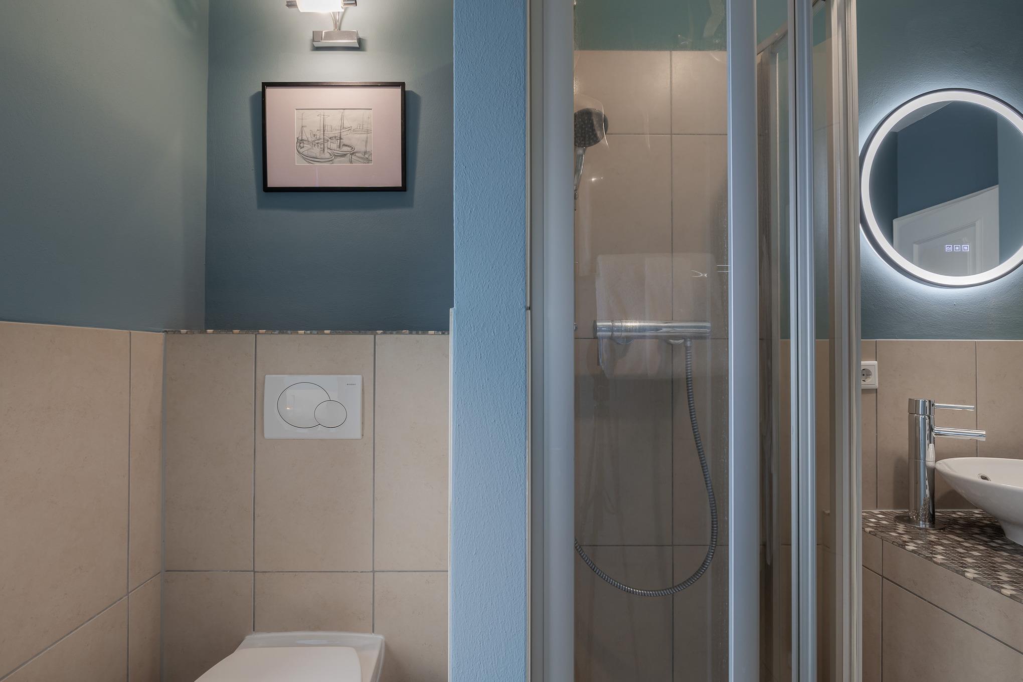 Einladend öffnet sich die geräumige Diele und geleitet Sie in ein modernes Duschbad, das bei Tageslicht erstrahlt und mit zwei stilvollen Waschbecken ausgestattet ist. Das Schlafzimmer beeindruckt mit einem großzügigen Einbauschrank und einem kuscheligen Schramm - Boxspringbett samt TV, das für süße Träume sorgt. Der lichtdurchflutete Wohn-Essbereich begeistert mit einer offenen Küche und Designklassikern von unter anderem Carl Hansen. Im Wohn-Essbereich lassen sich gesellige Stunden verbringen, das Wohnzimmer kann durch ein Schiebetürelement bei Bedarf in ein behagliches Refugium verwandelt werden. Nutzen Sie das hochwertige Schlafsofa und gestalten Sie das Wohnzimmer nach Ihren Wünschen – vielleicht als separates zweites Schlafzimmer? Die offene Küche ist mit exquisiten Markenprodukten wie Miele und Nespresso ausgestattet, um Ihnen ein entspanntes Kocherlebnis zu bieten.