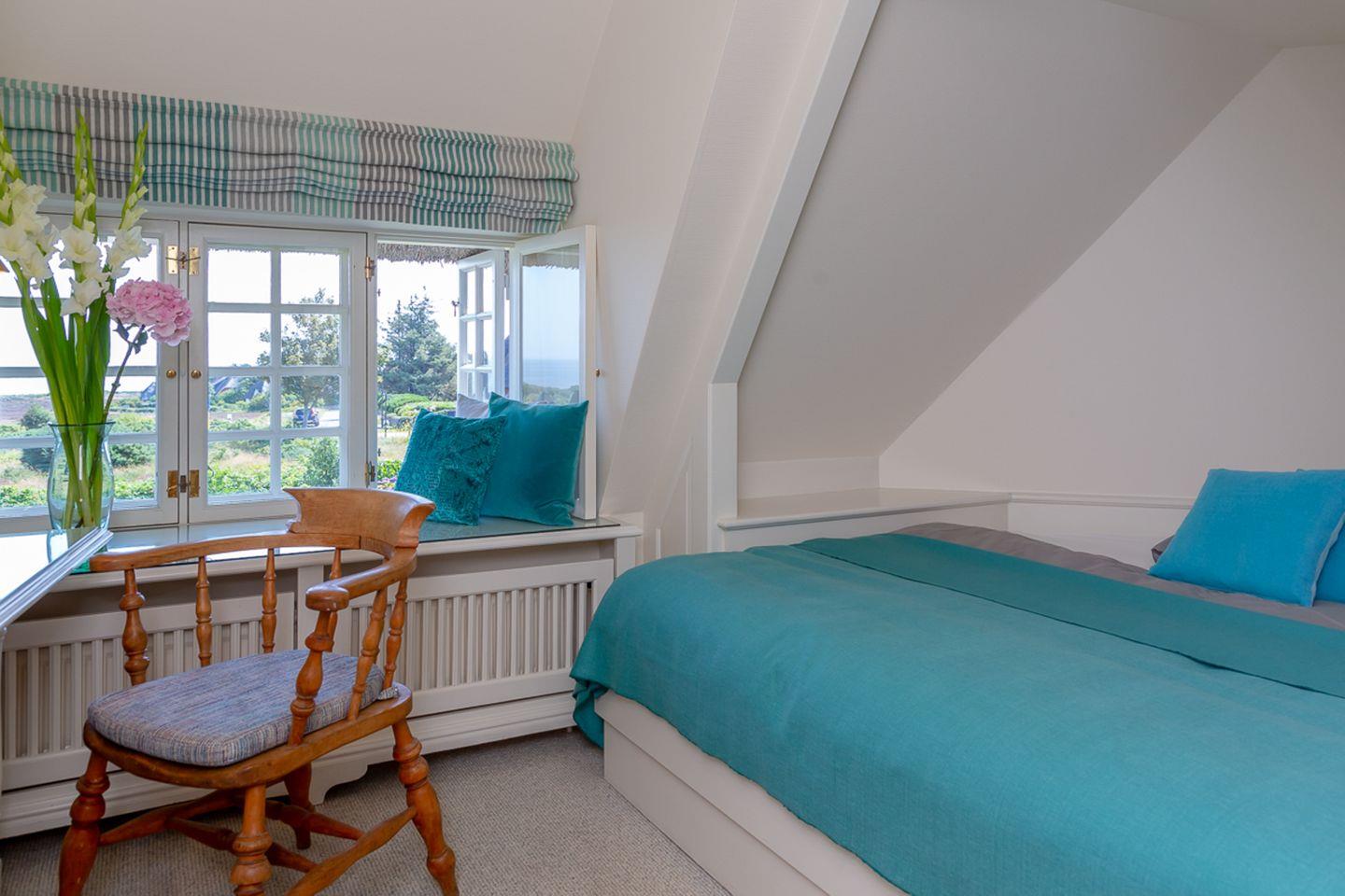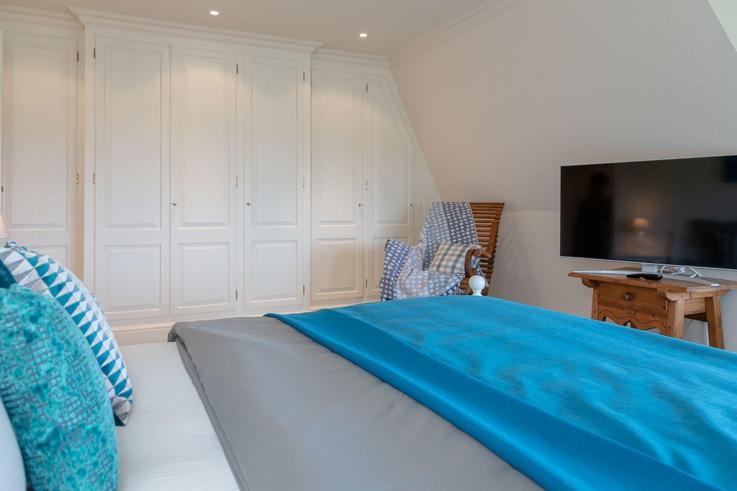 Im Obergeschoss befinden sich zwei Schlafzimmer mit großen Einbauschränken und der unvergleichlichen Möglichkeit, sich von Ihrem ganz persönlichen Sonnenaufgang in den Tag begleiten zu lassen. Ein Schlafzimmer verfügt über ein Doppelbett im gemütlichen Alkoven-Stil. Das Badezimmer wurde im Jahr 2025 vollständig saniert und bietet höchsten Komfort.