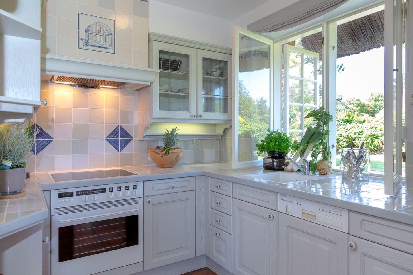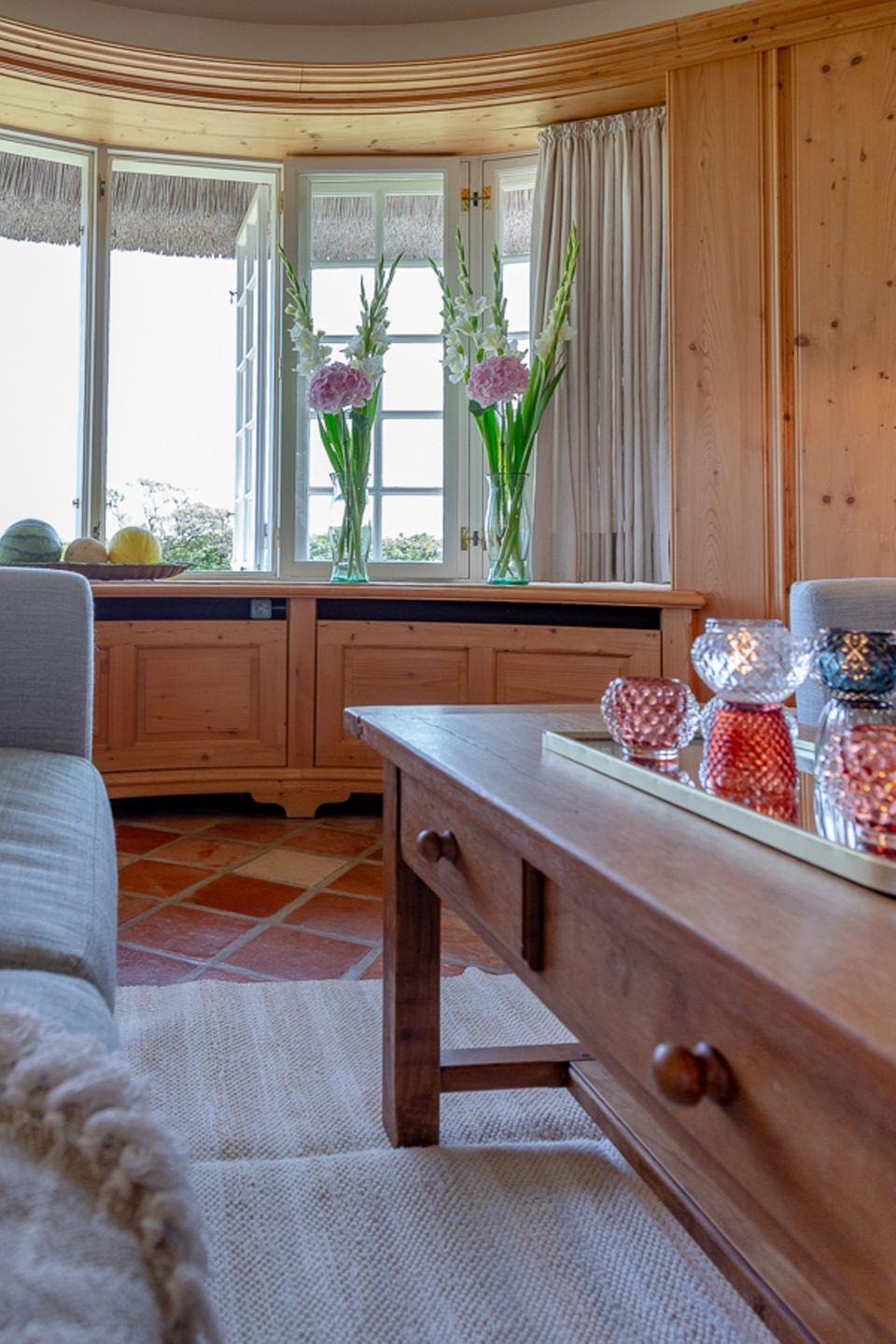 Verbringen Sie verträumte Stunden in Ihrem behaglichen Wohnzimmer, in dem Sie im Winter am Kamin sitzen und den unverstellten Blick auf das Meer genießen können. In diesem Haus wird das Motto „Wertschätzung statt Vergeudung“ großgeschrieben und so bietet Ihnen der leicht separate Küchenbereich – im Sinne der Nachhaltigkeit – eine gelungene Kombination aus hochwertiger Ausstattung und älteren Küchengeräten, durch die sich die Selbstversorgung im Urlaub einfach gut anfühlt.