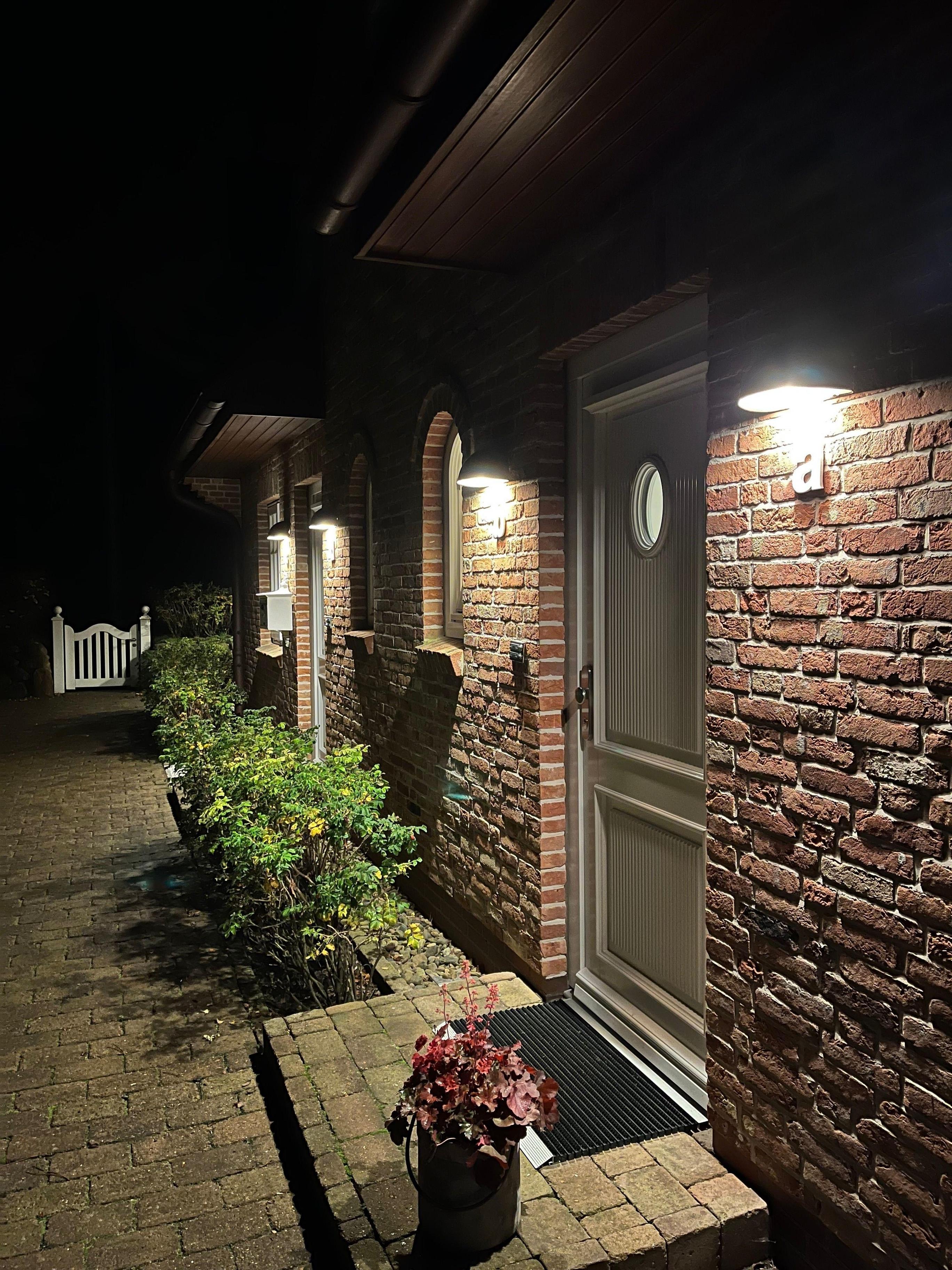 Lichtdurchflutete Endhaus-Wohnung mit großzügigem Gartenteil, geschützt, da eingewachsenes Grundstück, freier Blick auf Weideland und Kampener Leuchtturm, sehr ruhige Lage. Das Haus liegt in einer Mulde, zur Straße nach Kampen durch Büsche und Bäume isoliert. Durch die äußerst zentralen Standort ist der Urlaub auch ohne Auto problemlos (Feinkost Meyer ca. 200 m), Bushaltestelle, Arzt, Apotheke in Laufnähe, direkt am Rad- und Joggingweg nach Kampen, zum Dorfteich 200 m, zum Strand 800 m, Golf-Club Sylt in Sichtweite.