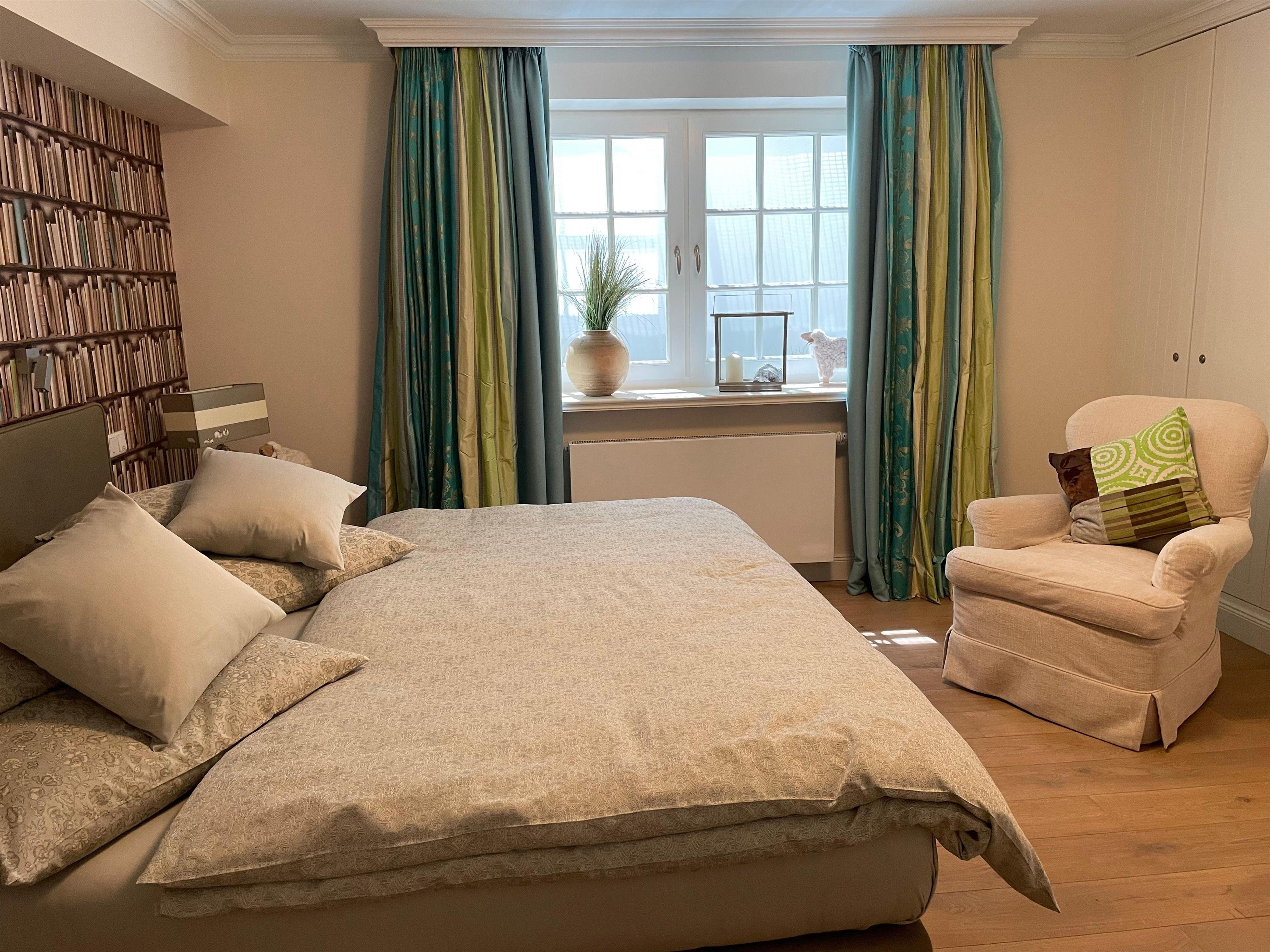 Außergewöhnliche, gemütliche Wohnung mit großzügiger Gartenterrasse auf Kampener Belag. Umgeben von Friesenwällen mit Sylter Rosen und eigenem Carport.
