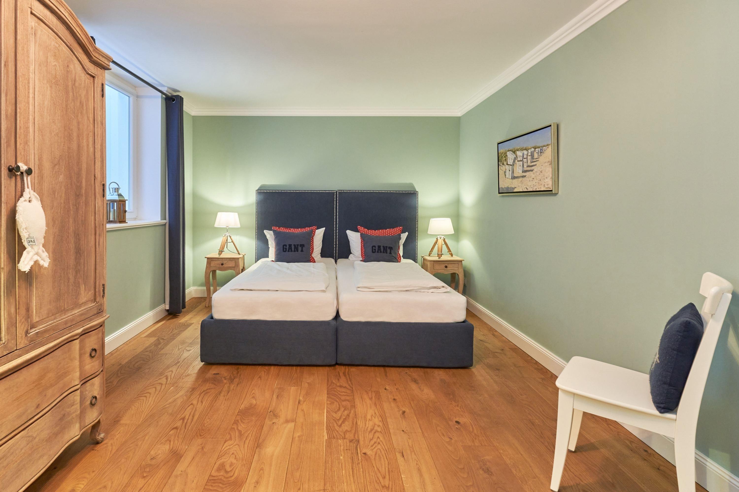 Exklusive Doppelhaushälfte unter Reet im Hampton Style für bis zu 8 Personen. Außen Sylt , innen Hamptons. Über einen kleinen Vorflur mit Garderobe gelangt man in das großzügige Wohnzimmer mit seiner offenen Küche mit den angrenzenden Essplatz für gemütliche Abende. Auffällig und besonders neben der hochwertigen Ausstattung ist das Beleuchtungskonzept sowie die Holzeinbauten mit IPhone - Ladestationen. Im Obergeschoss verfügt über zwei Schlafzimmer und ein Badezimmer mit bodengleicher Dusche. Der ausgebaute Spitzboden verfügt über zwei weitere Einzelbetten. Im Untergeschoss befindet ein Schlafzimmer mit Doppelbett und Schrankeinbauten sowie ein weiteres Wohn und Schlafzimmer. Eine Sauna mit großzügigen Bad ist ebenfalls vorhanden. Der Technik und Hauswirtschafsraum verfügt über eine Waschmaschine und Trockner.