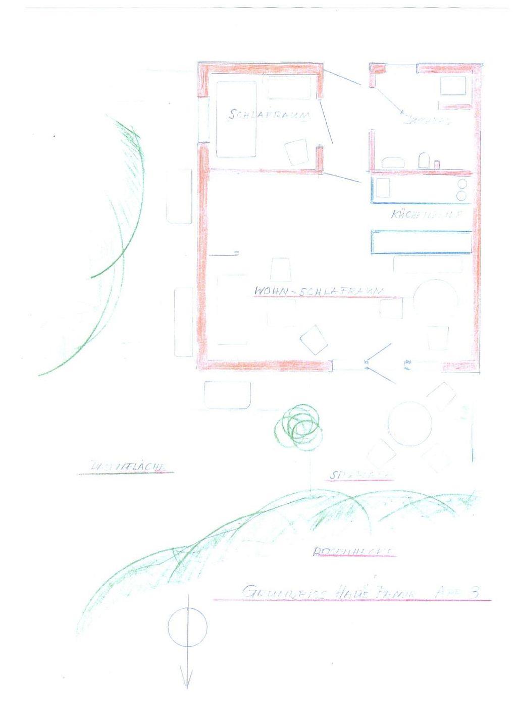 Die ebenerdige Wohnung besteht aus zwei Räumen, Garderobe, Duschbad und großzügiger privatgenutzter