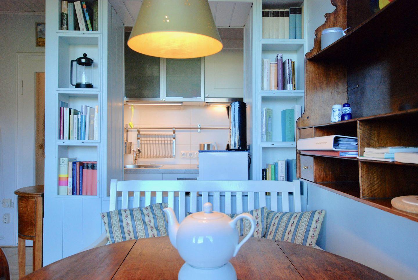 - Pantryküche mit Kühlschrank +Gefrierfach, Cerankochfeld, Dunstabzug, Geschirrspüler, Microwelle, Kaffeemaschine, Wasserkocher