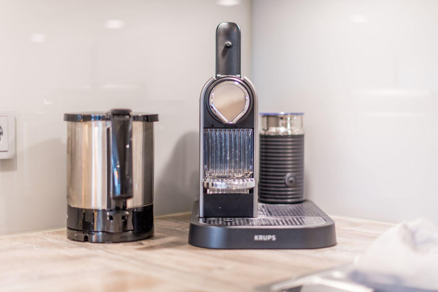 Die moderne Küche ist offen gestaltet und bietet alles, was Sie für die Zubereitung Ihrer Lieblingsgerichte benötigen. Sie ist mit einer Spülmaschine, einem Ceran-Kochfeld, einer Nespresso-Maschine, einer Mikrowelle und weiteren Annehmlichkeiten ausgestattet, die einen komfortablen Aufenthalt sicherstellen.