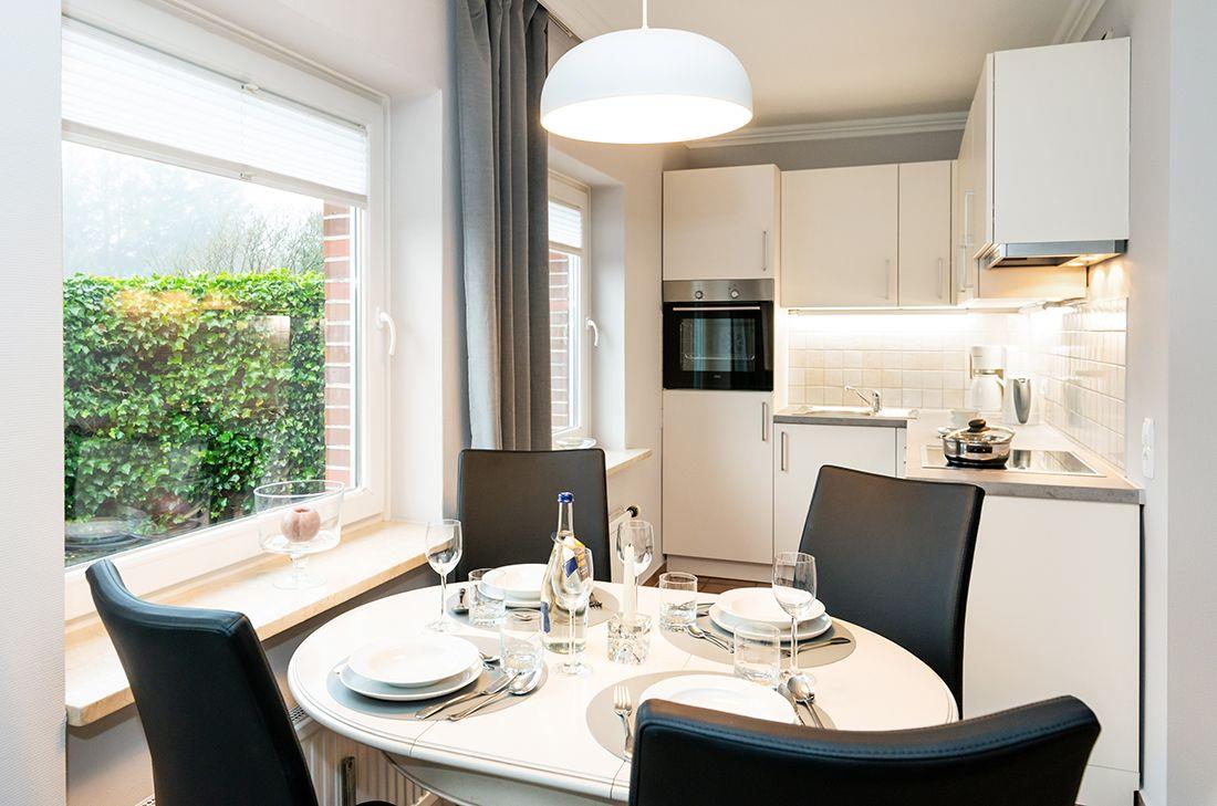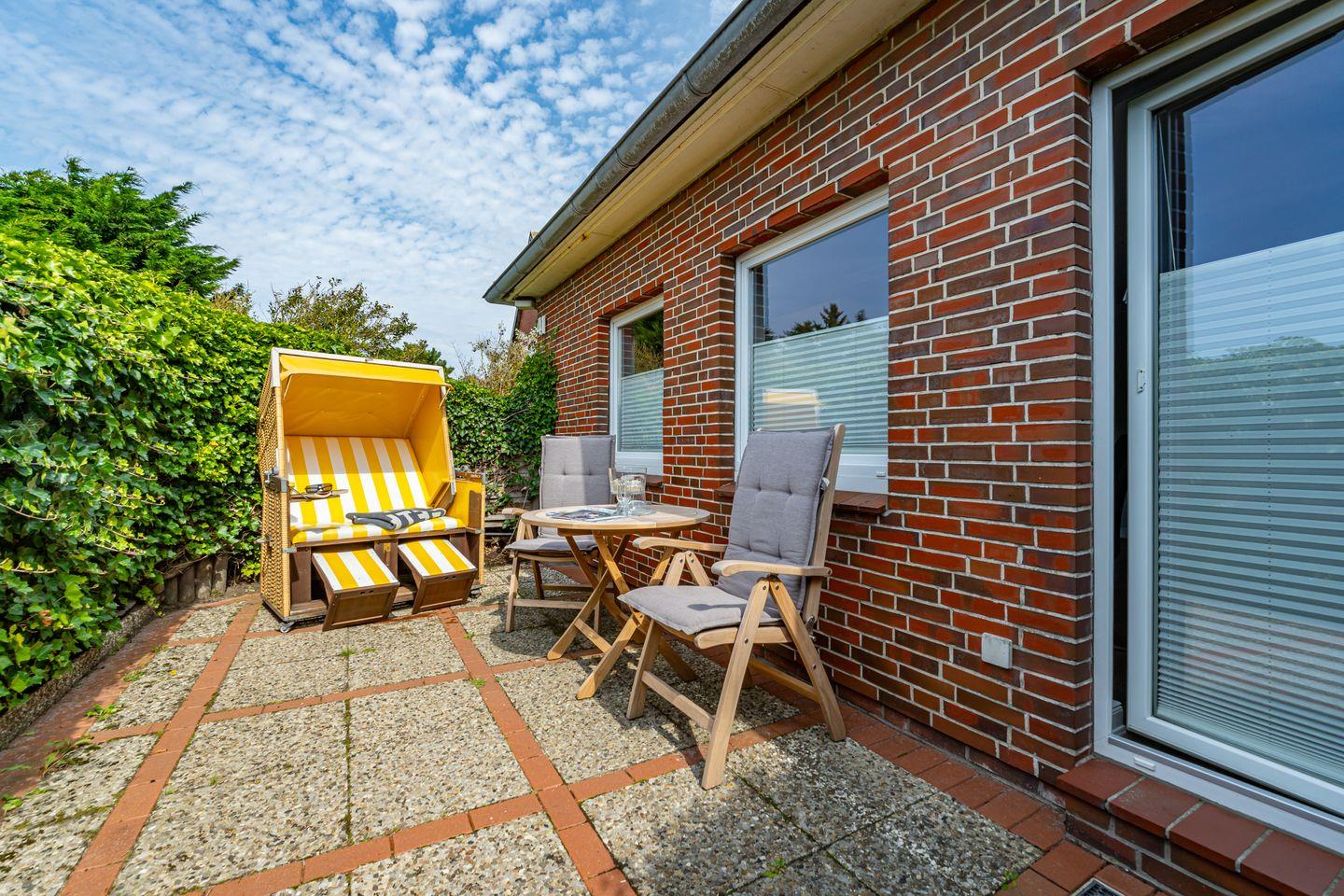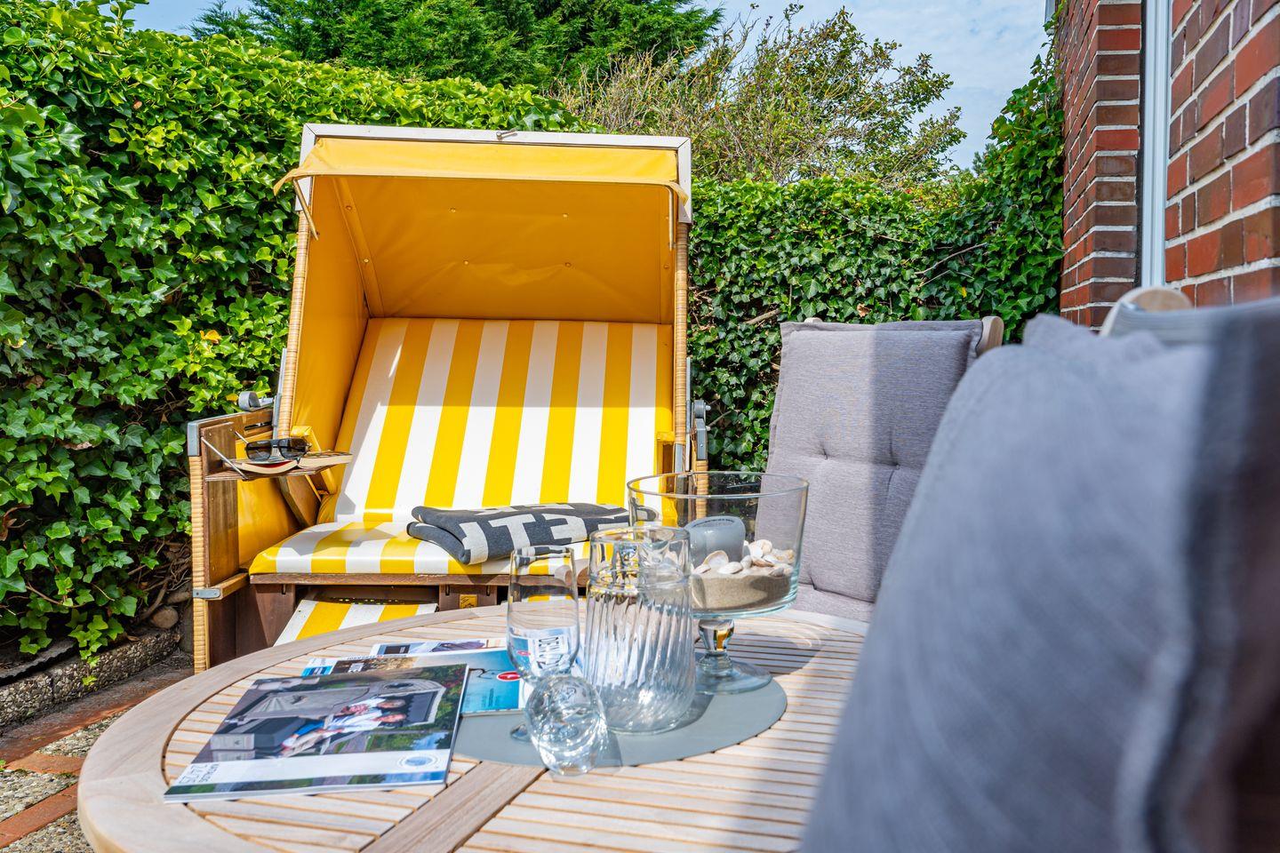 3-Zimmer-Ferienwohnung im EG für max. 3 Personen mit Terrasse & Strandkorb.