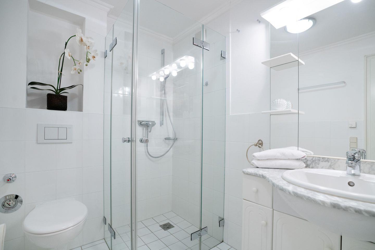 Sein lichtdurchfluteter Wohnraum mit Küchenzeile und kleinem Essbereich ist mit viel Holz, Naturtönen und charmanten Details äußerst gemütlich gestaltet - perfekt, um nach einem langen Strandtag die Füße hochzulegen. Eine schöne Alternative dafür bietet auch der Strandkorb auf der kleinen Terrasse (Südwest) direkt vor dem Appartement. Eine Treppe tiefer, im Souterrain, befinden sich das Schlafzimmer mit seinem komfortablen Doppelbett sowie das ganz in Weiß gehaltene Duschbad. Wer noch mehr "Wellness" möchte, kann kostenfrei die große Gemeinschaftssauna der Anlage nutzen.