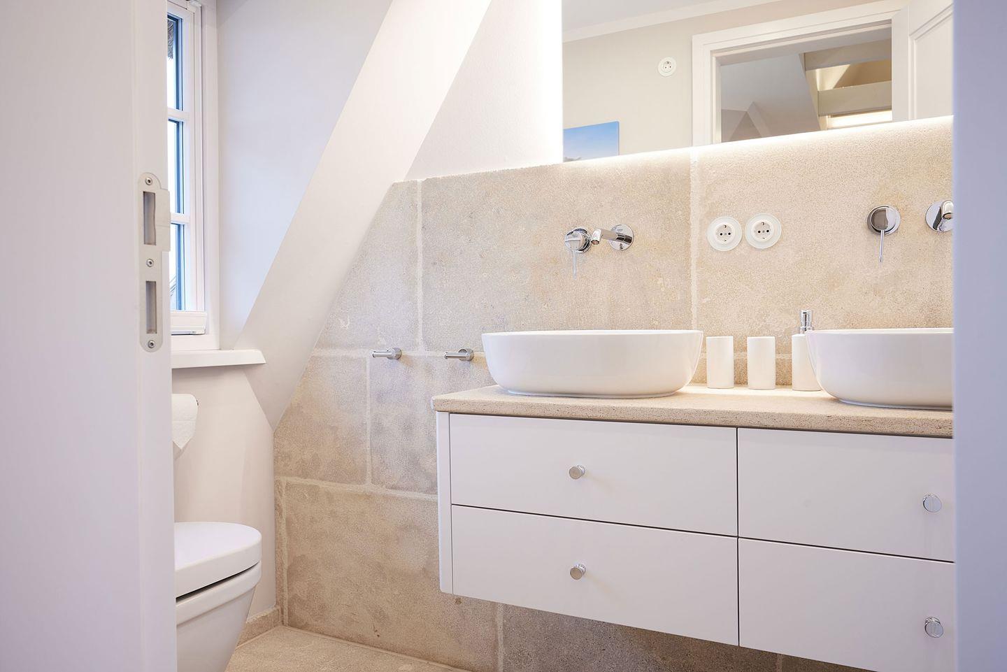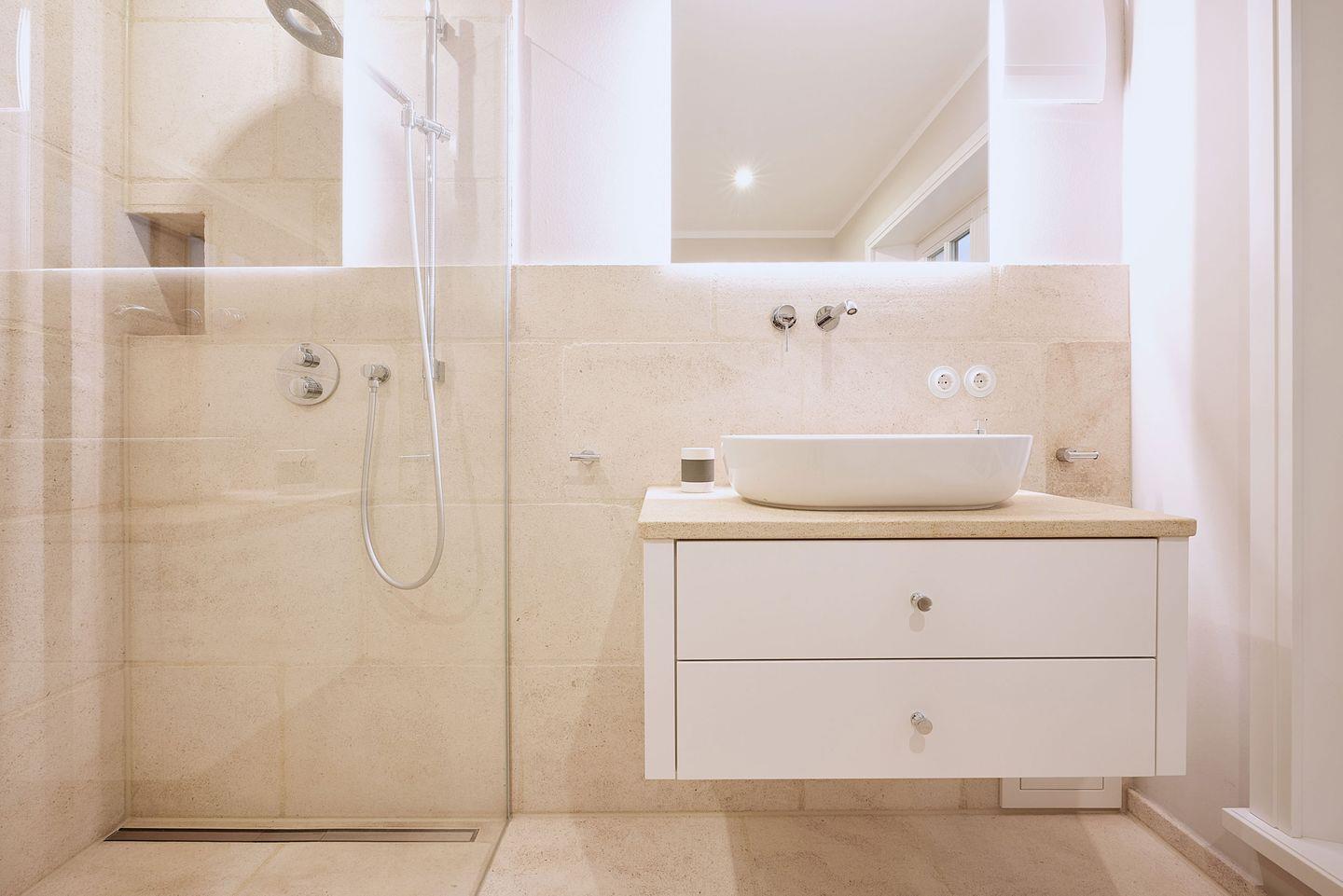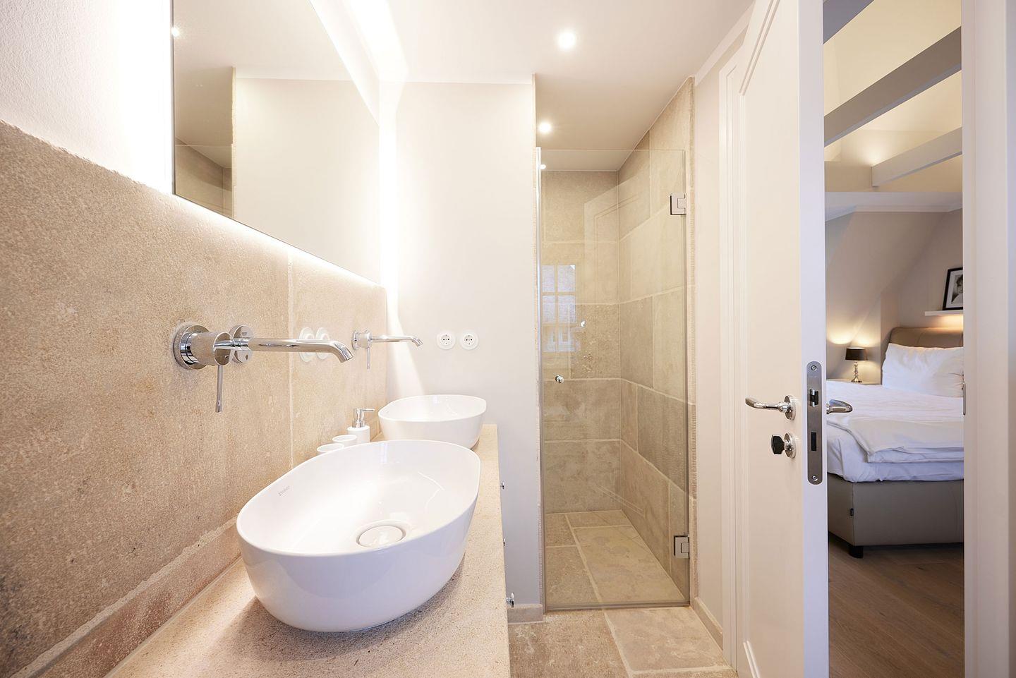Die beiden modernen Duschbäder sind mit hochwertigen Materialien ausgestattet und bieten Fußbodenheizung sowie Tageslicht.