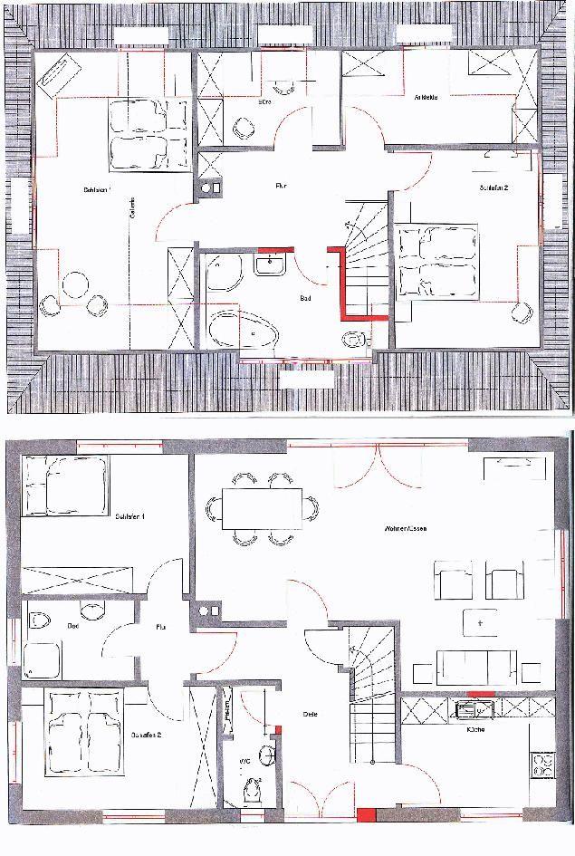 Dieses großzügige Ferienhaus bietet auf ca. 200 m² Wohnfläche über zwei Ebenen (Erdgeschoss und Dachgeschoss) außergewöhnlich viel Platz für einen entspannten Urlaub mit Familie oder Freunden. Mit fünf komfortablen Schlafzimmern, zwei vollwertigen Bädern und einem zusätzlichen Gäste-WC finden selbst größere Gruppen jederzeit ausreichend Raum zum Wohlfühlen. Ein separates Büro bietet zudem die Möglichkeit, auch im Urlaub ungestört zu arbeiten oder in Ruhe zu lesen.