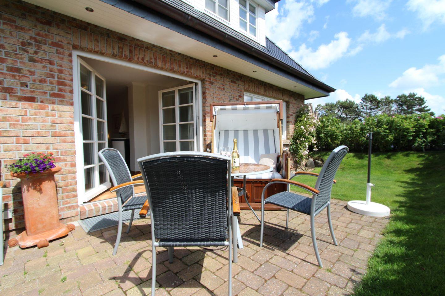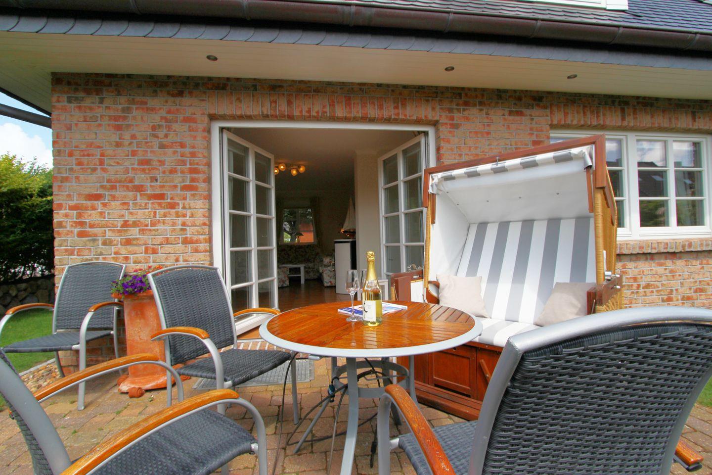 Auf der herrlichen Terrasse mit Südausrichtung und eigenem Strandkorb (April bis Oktober) genießen Sie die sonnigen Tage und haben hier sogar die Möglichkeit, im Freien zu frühstücken. Besser kann man nicht in den Urlaubstag starten!