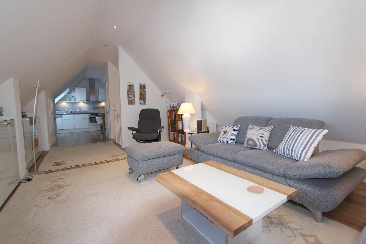 Individuell geschnittene, sehr moderne Ferienwohnung im 2. Ober- und Dachgeschoss für zwei Personen. Genießen Sie den Komfort einer besonders strandnahen Lage und teilweise Meerblick vom Appartement. Als besonderes Highlight steht Ihnen in der Saison ein Strandkorb am Hauptstrand zur freien Nutzung zur Verfügung!