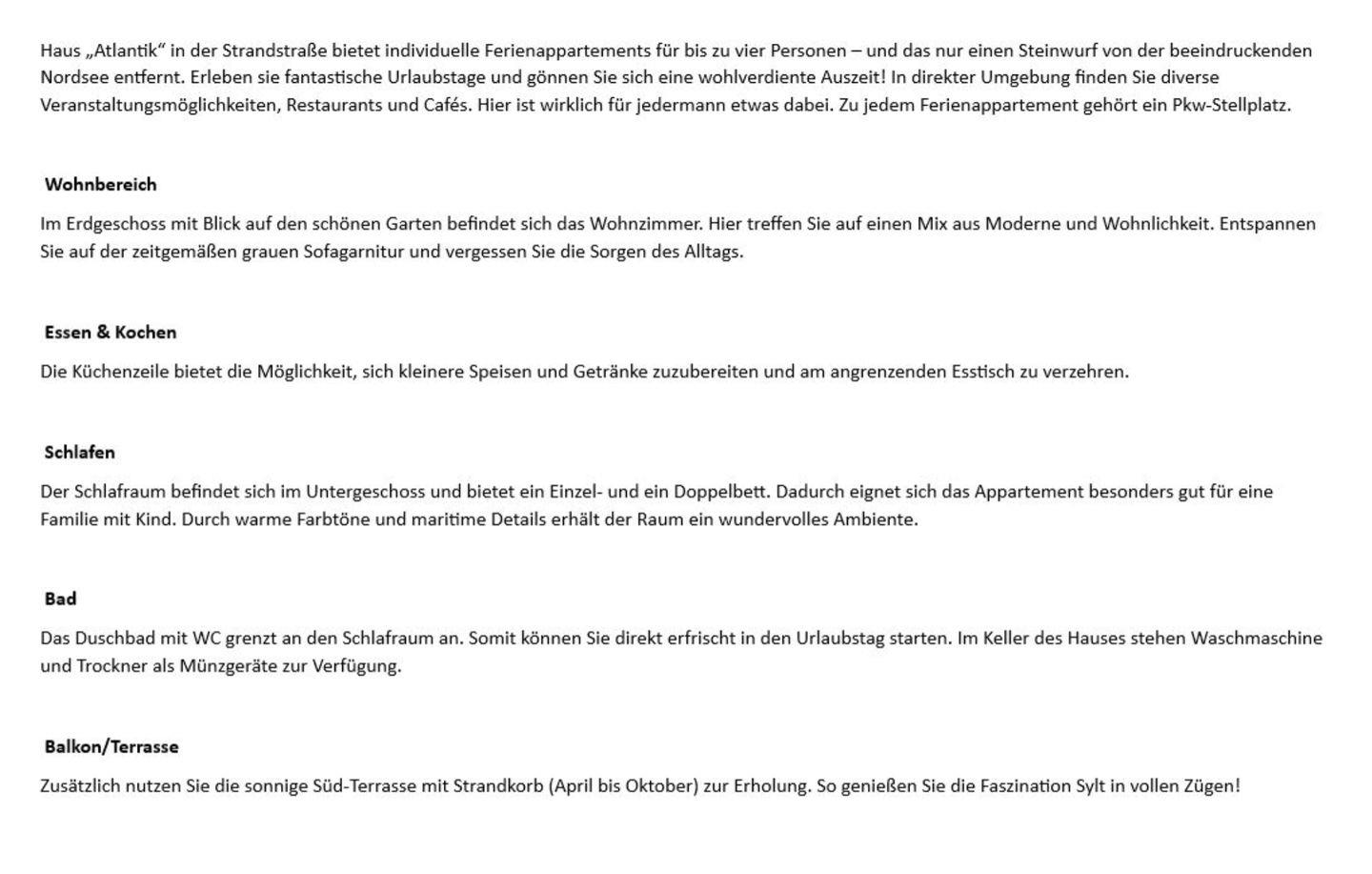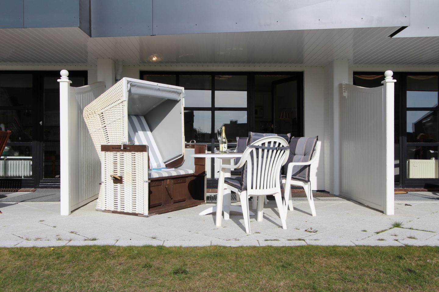 Zusätzlich nutzen Sie die sonnige Süd-Terrasse mit Strandkorb (April bis Oktober) zur Erholung. So genießen Sie die Faszination Sylt in vollen Zügen!