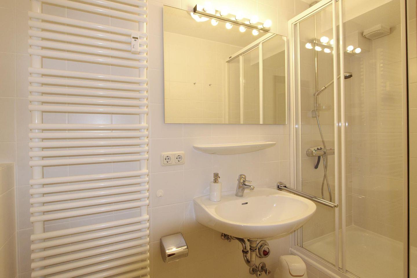 Das Duschbad mit WC grenzt an den Schlafraum an. Somit können Sie direkt erfrischt in den Urlaubstag starten. Im Keller des Hauses stehen Waschmaschine und Trockner als Münzgeräte zur Verfügung.