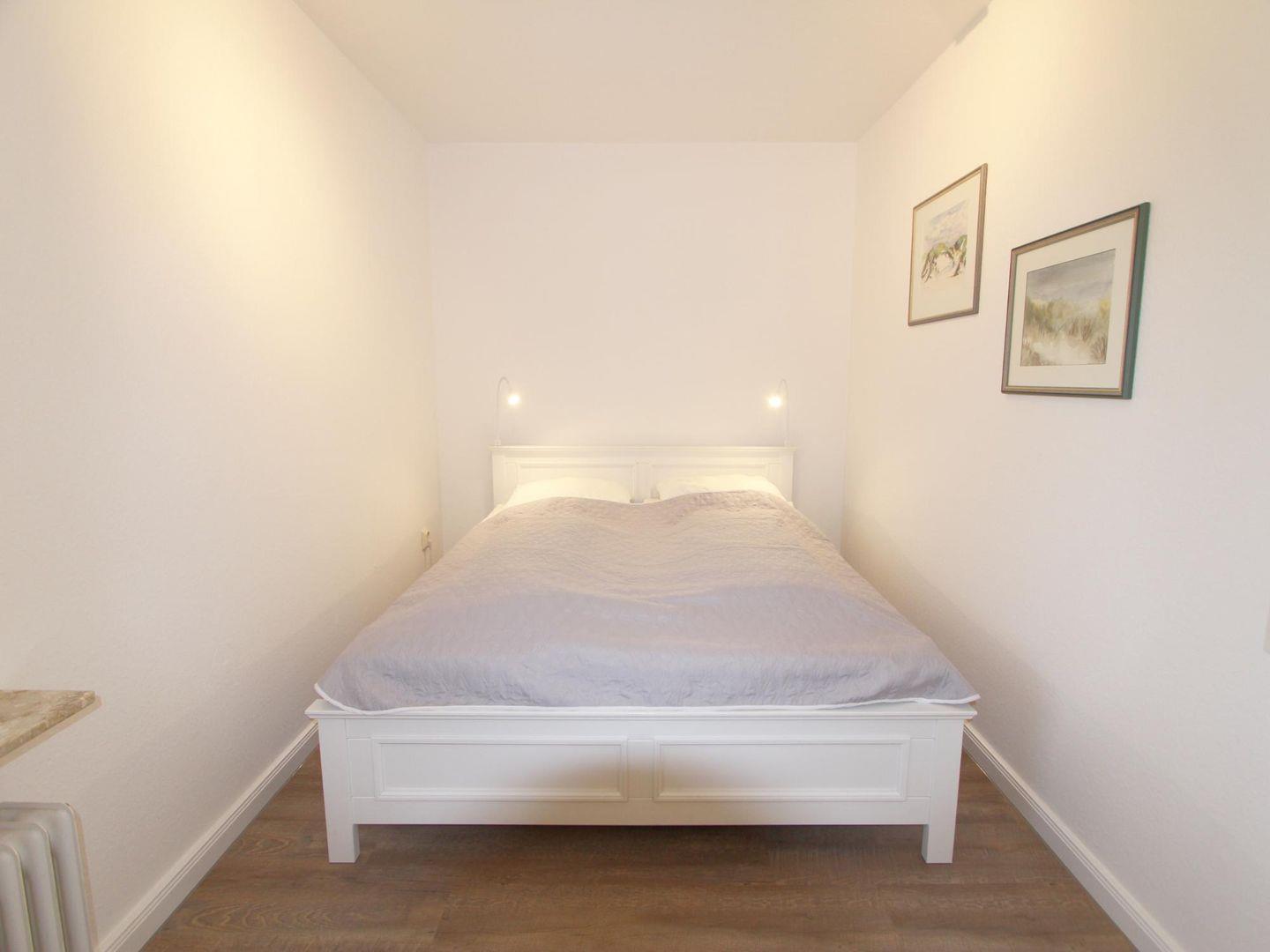 Der Schlafraum ist gen Osten gerichtet, sodass Sie sich morgens von den ersten Sonnenstrahlen wecken lassen können. Zudem besteht die Möglichkeit, das Sofa im Wohnzimmer auszuziehen. Dort finden bis zu zwei Personen Platz.
