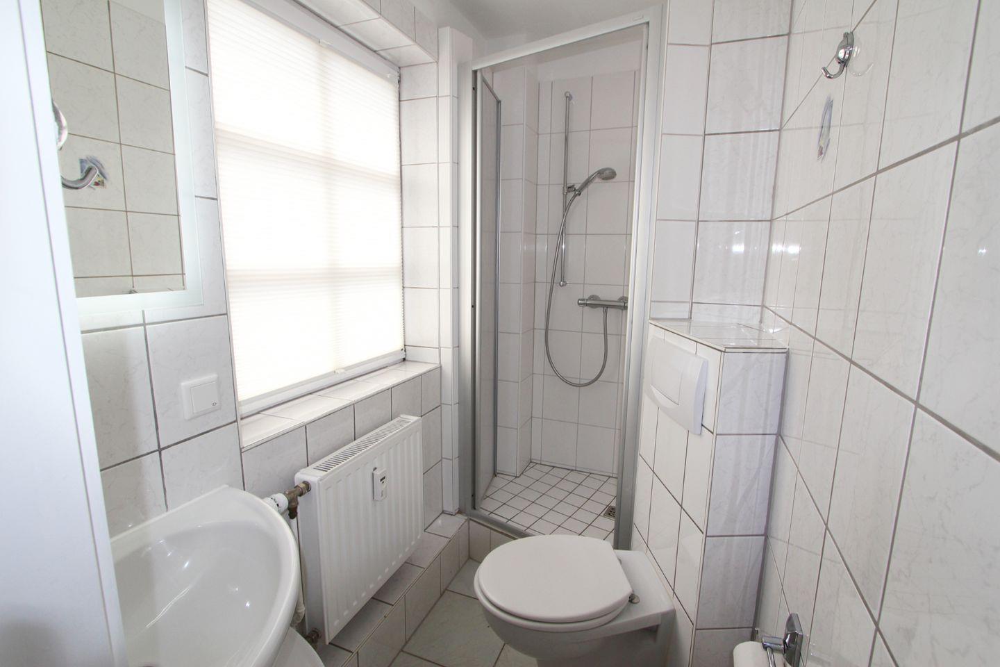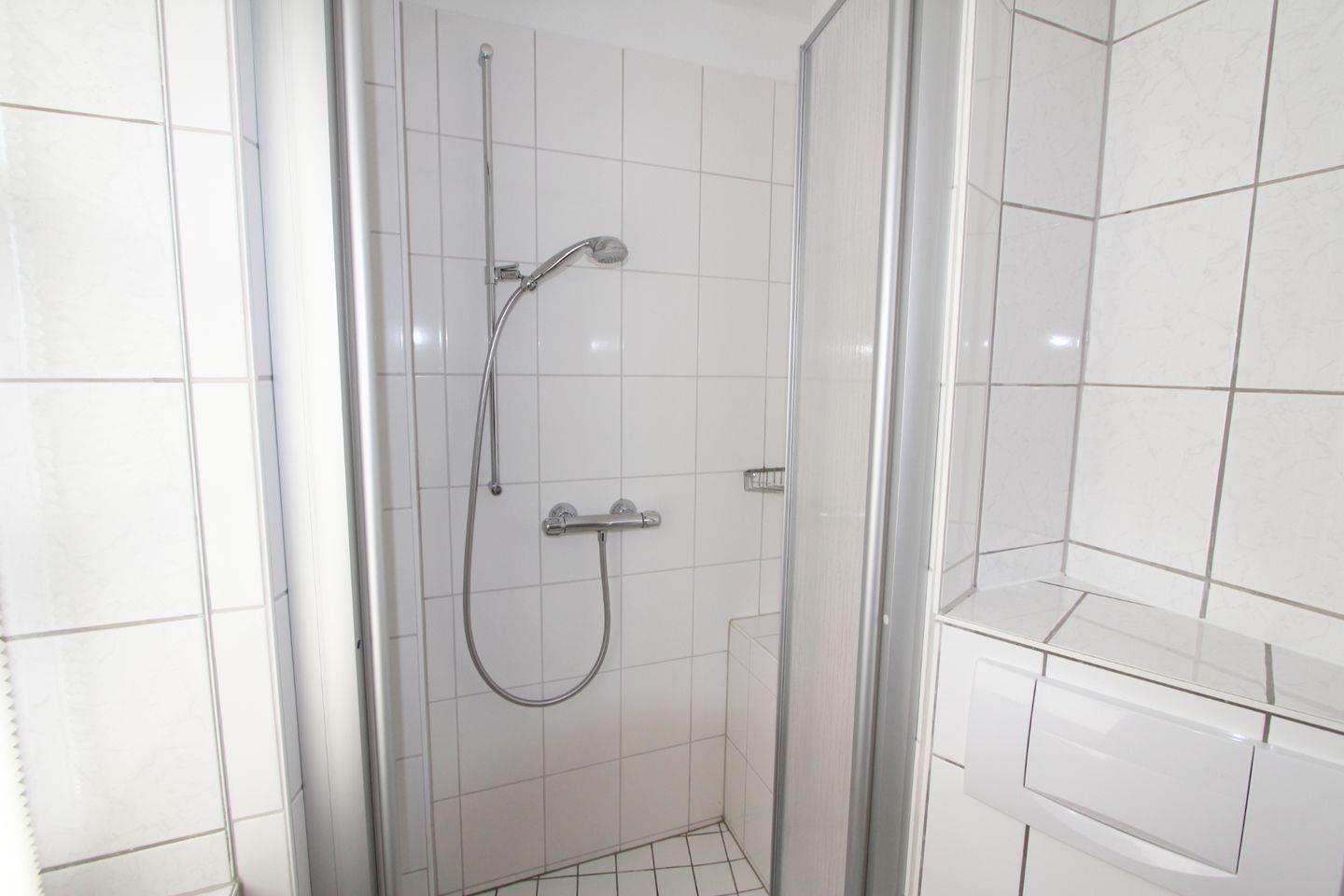 Sowohl auf der Wohnebene, als auch angrenzend an einen der beiden Schlafräume finden Sie ein Duschbad mit WC. Waschmaschine und Trockner (Münzgeräte) stehen im Keller des Hauses Nr. 17 zur Verfügung.