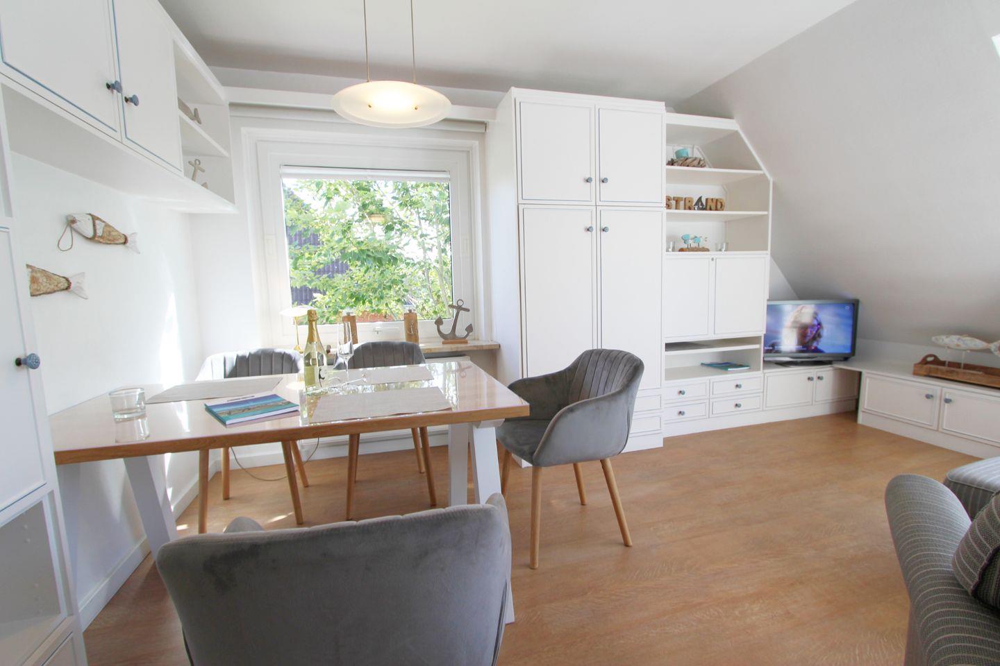 Individuell eingerichtetes Ferienappartement im Ober- und Dachgeschoss eines strandnah gelegenen Feriendomizils. Verbringen Sie mit bis zu drei Personen unvergessliche Tage in dieser Wohnung. Hunde sind hier herzlich willkommen!