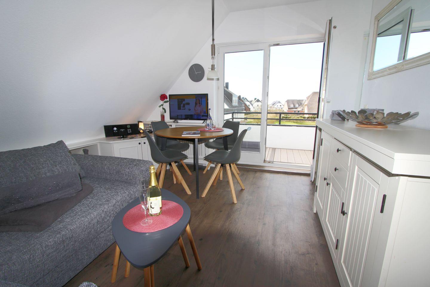 Helle und strandnahe Ferienwohnung in Wenningstedt mit Balkon und Strandkorb.
