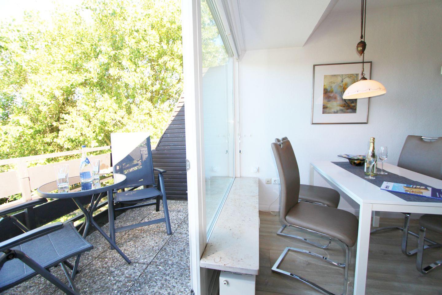 Ein schöner Balkon mit Westausrichtung eignet sich ideal, um die gesunde Nordseeluft in die Lungen strömen zu lassen und sich dabei optimal zu entspannen.