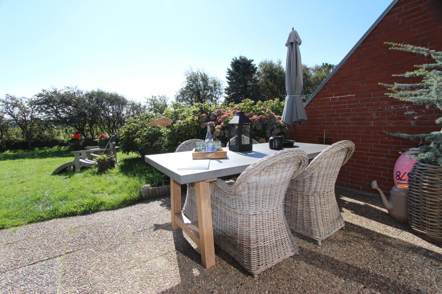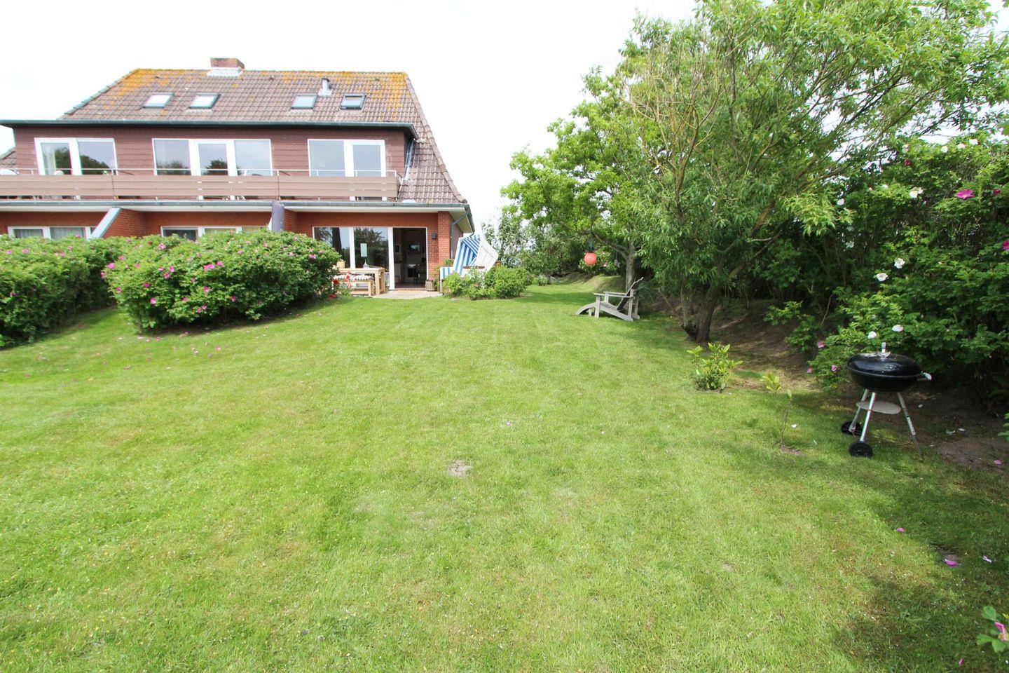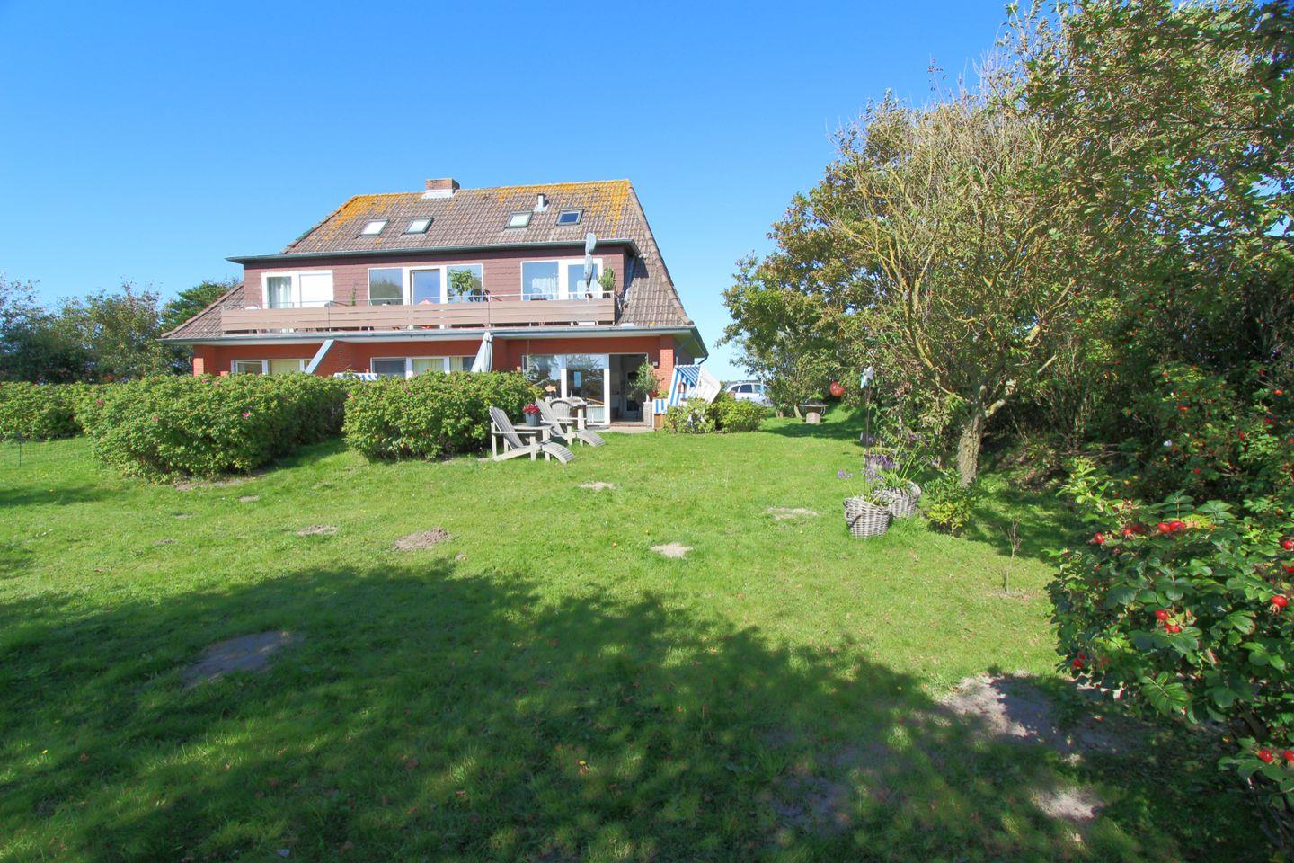 Genießen Sie den Luxus einer sonnigen Terrasse mit eigenem Strandkorb – stilvoller kann man sich auf Sylt nicht entspannen! Das grüne Grundstück ist der perfekte Rückzugsort vom Stress des Alltags.