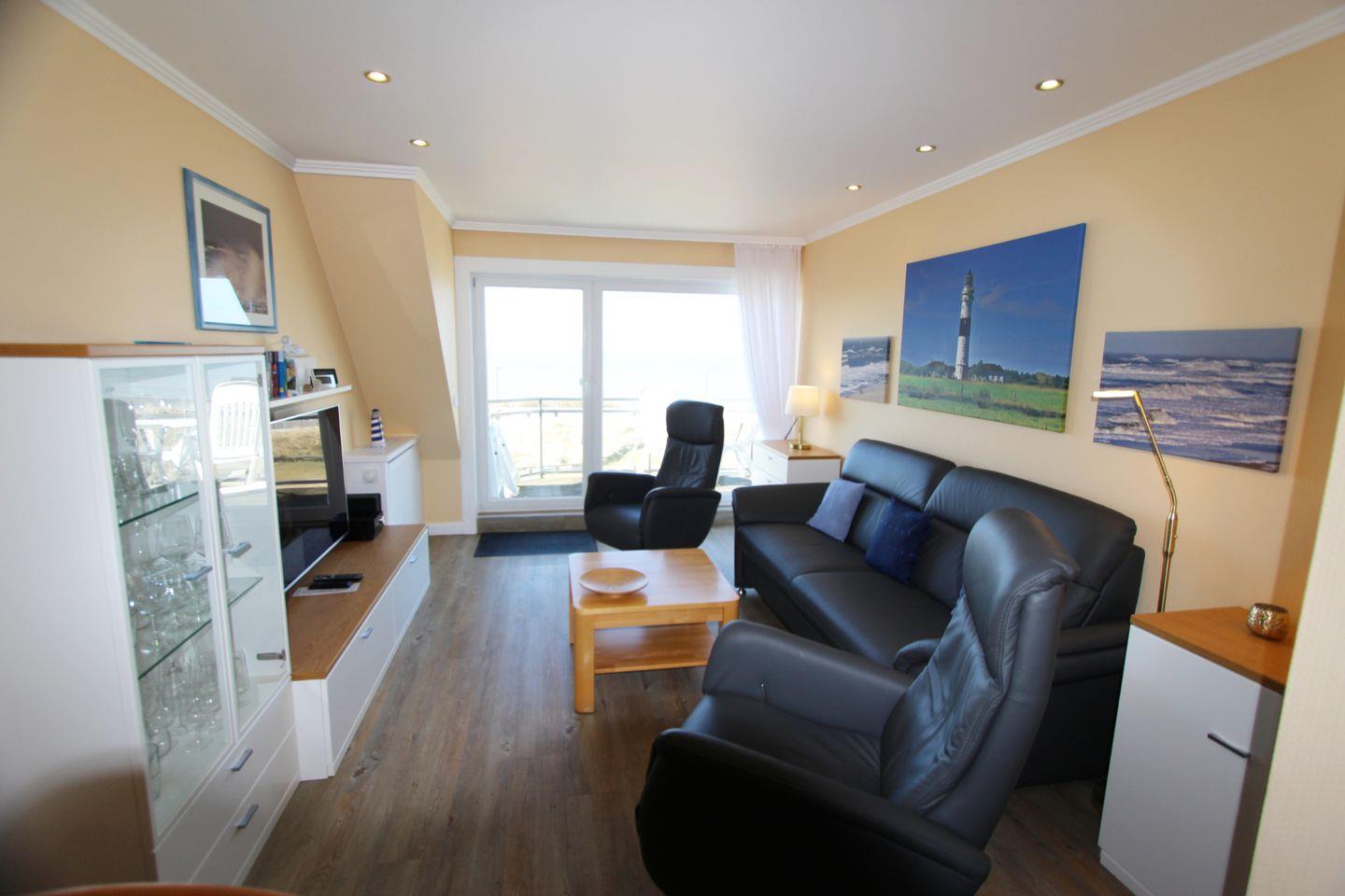 Genießen Sie auf dem West-Balkon den direkten Meerblick! Ob Sonne oder „Sylt-Wetter“, hier sind Sie dem Meer ganz nah.