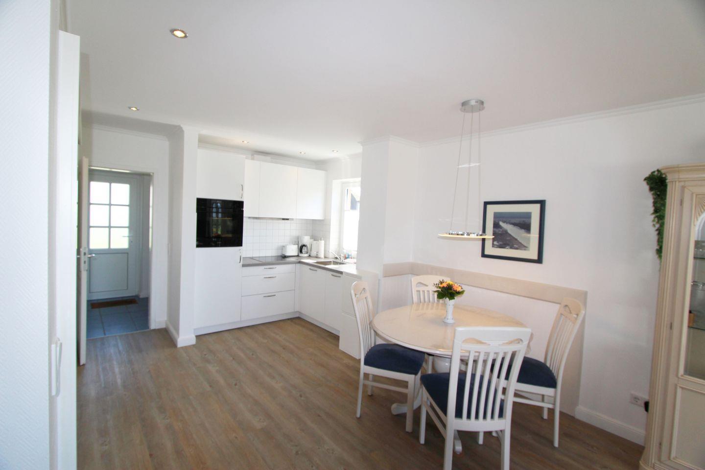 Der Essbereich befindet sich im großen Wohnraum im Erdgeschoss und bietet Platz für vier Personen. Die offene Küche bietet ausreichend Platz und Arbeitsflächen, um gemeinsam zu kochen.