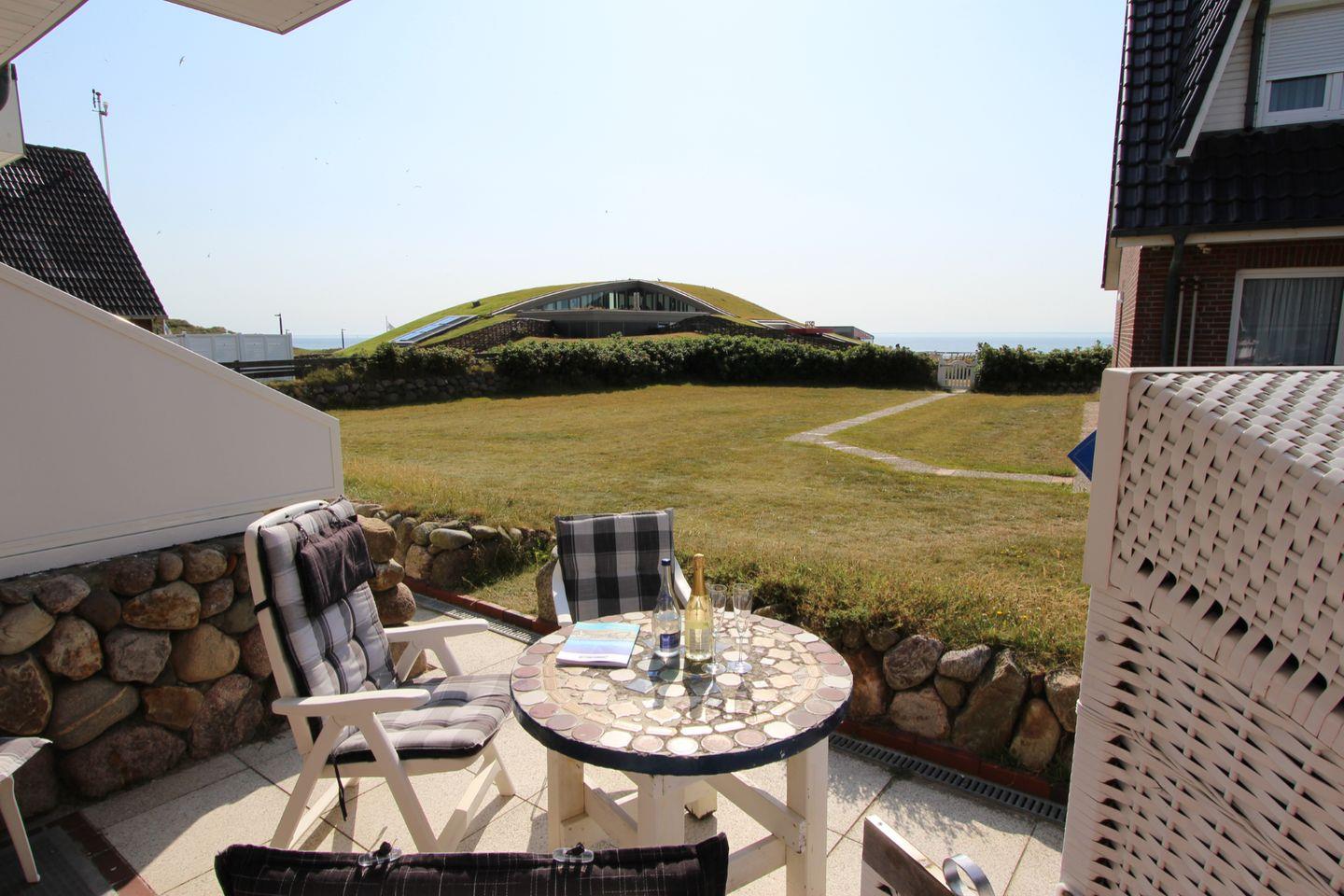 Als besonderes Highlight dürfen Sie sich auf die sonnige West-Terrasse freuen, auf der Sie die einzigartigen Sonnenuntergänge der Insel Sylt beobachten können.
