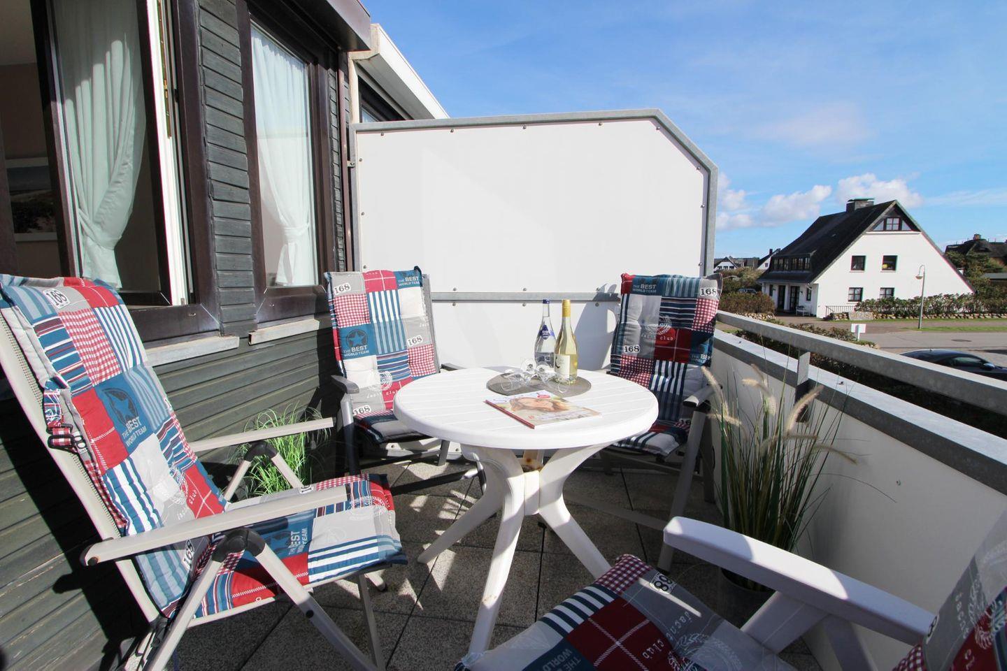Ferner bietet das Wohnzimmer Zugang zu einem schönen Süd-Balkon. Dieser eignet sich ideal, um laue Sommerabende an der gesunden Nordseeluft zu verbringen.