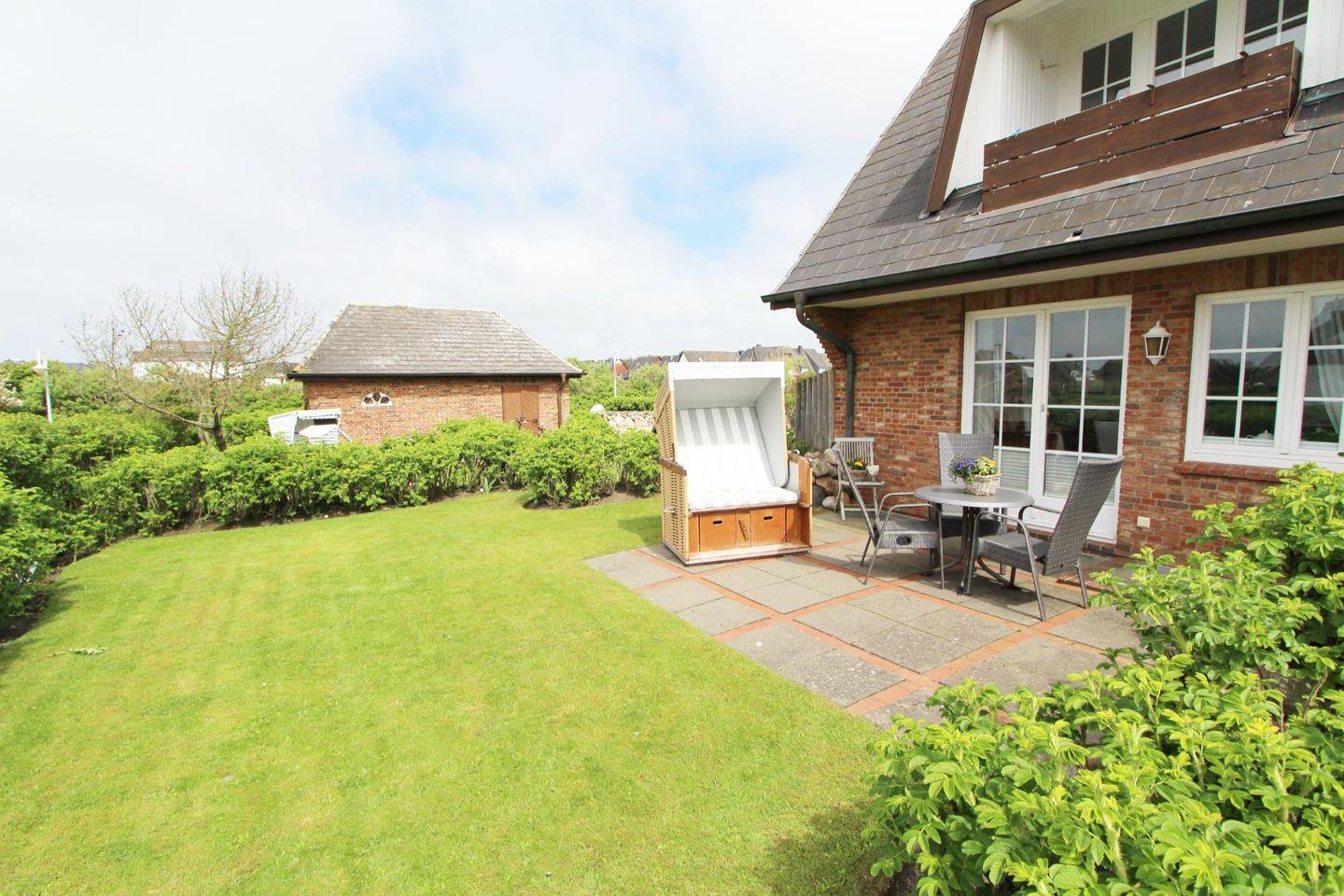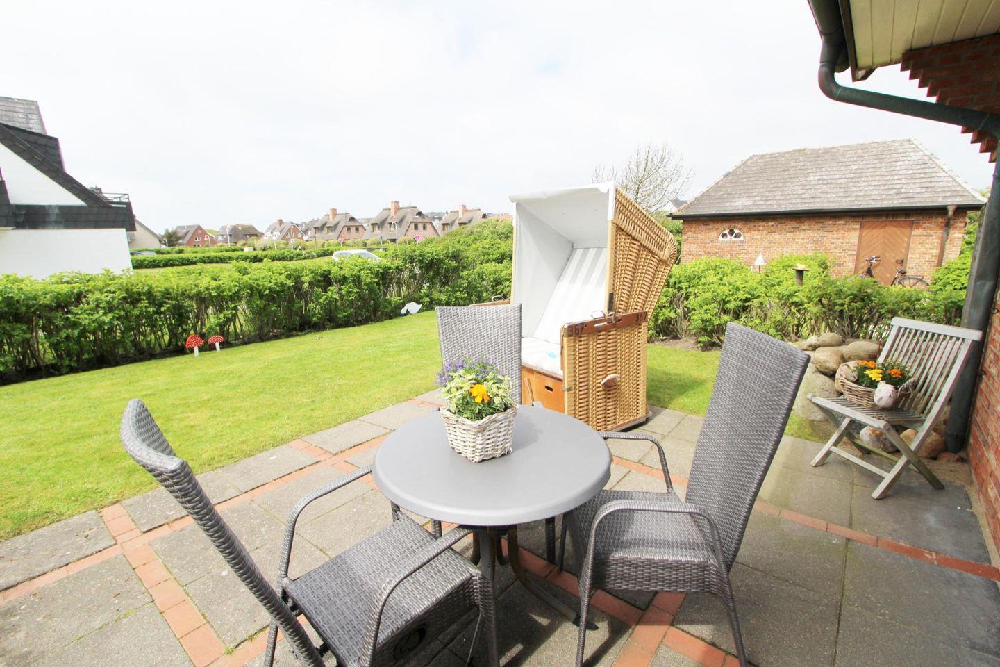 Auf der West-Terrasse mit Strandkorb (April bis Oktober) können Sie die Sylter Sonne in vollen Zügen auskosten. Besonders am Abend lässt sich die untergehende Sonne beobachten.