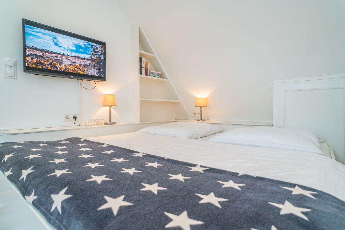 Großes Schlafzimmer mit Doppelbett und LCD-Flat TV.