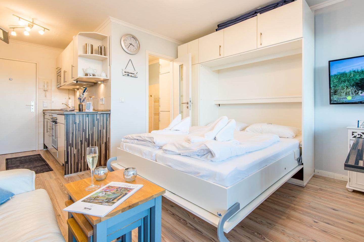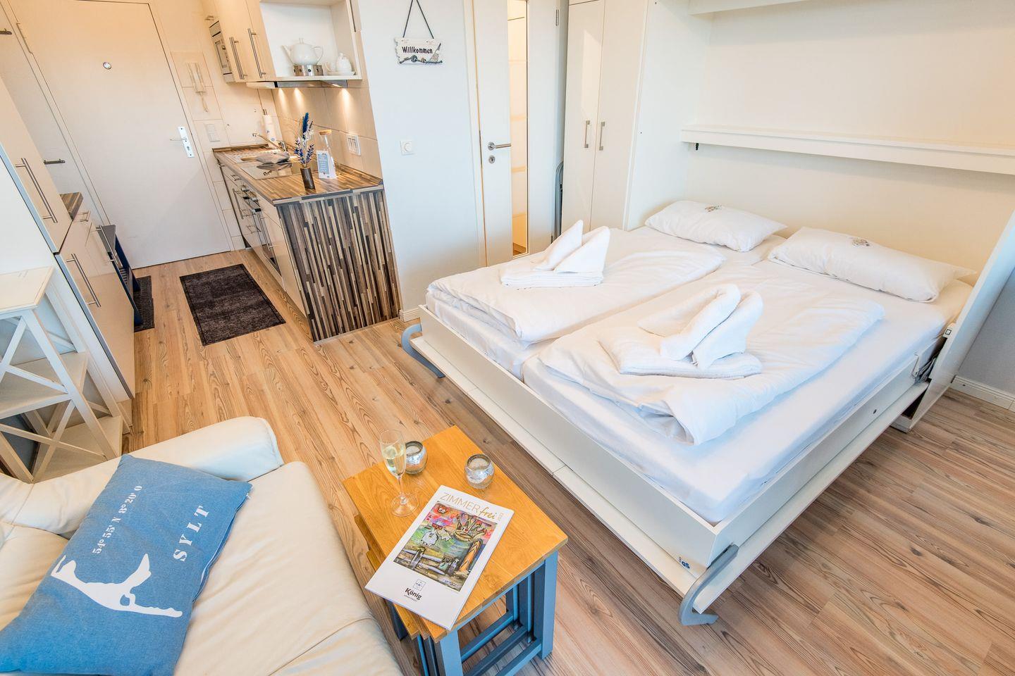 MODERNE 1-ZIMMER-FERIENWOHNUNG IN WENNINGSTEDT – BESTE LAGE AM STRANDÜBERGANG FÜR BIS ZU 2 PERSONEN