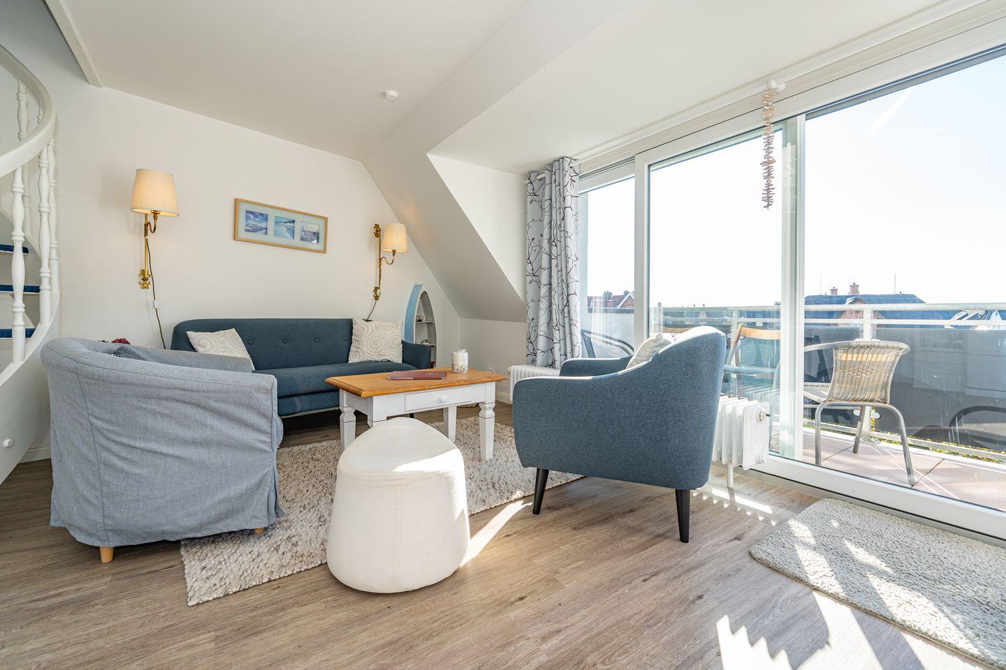 Ruhige 2-Zi-Ferienwohnung in Strandnähe. Die Wohnung hat einen großzügige Wohn-/Essbereich, 1 Schlafzimmer, geeignet für 2 - 4 Personen. Vom großen Süd - Balkon genießen sie einen traumhaften Blick über die Dächer von Wenningstedt bis zu den Dünen