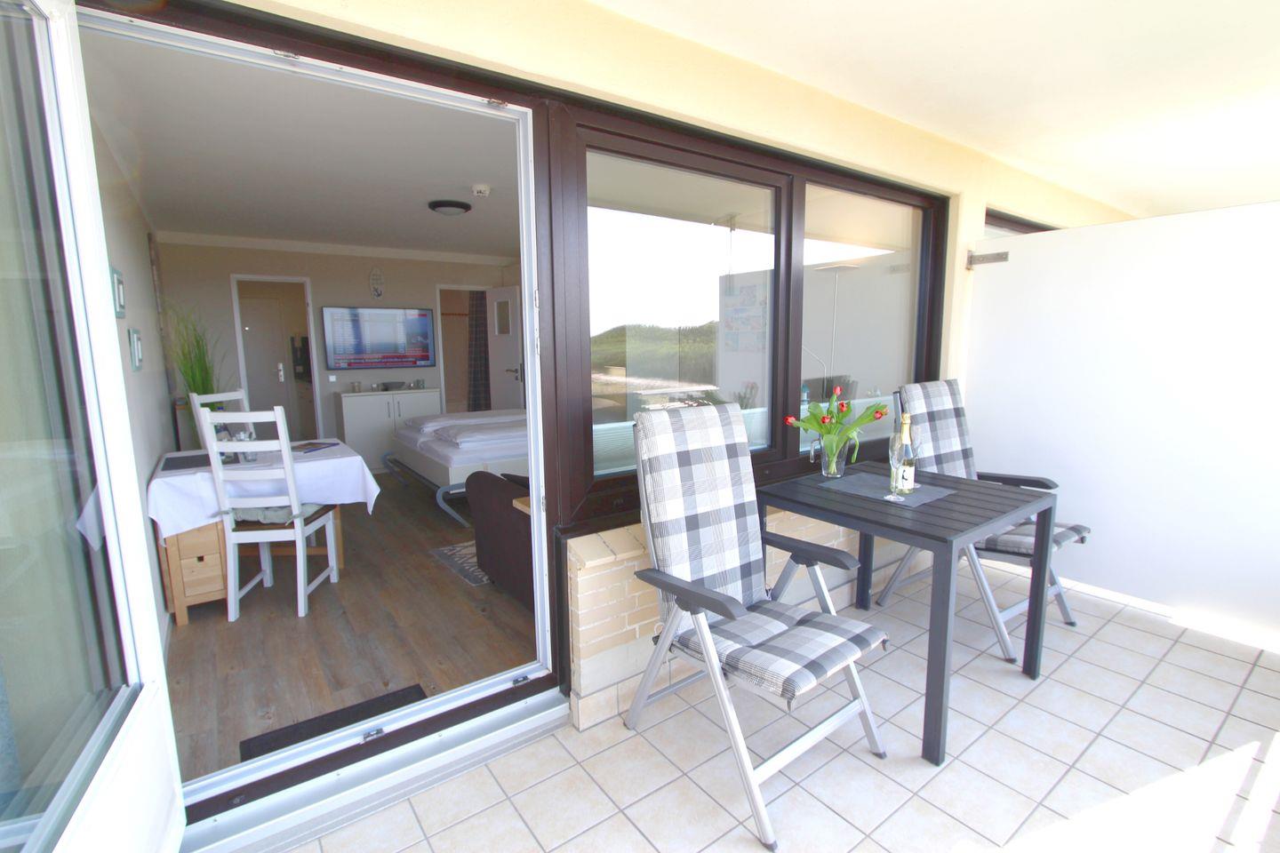 Ein-Zimmer-Appartement mit traumhaftem Meerblick direkt am Strandübergang