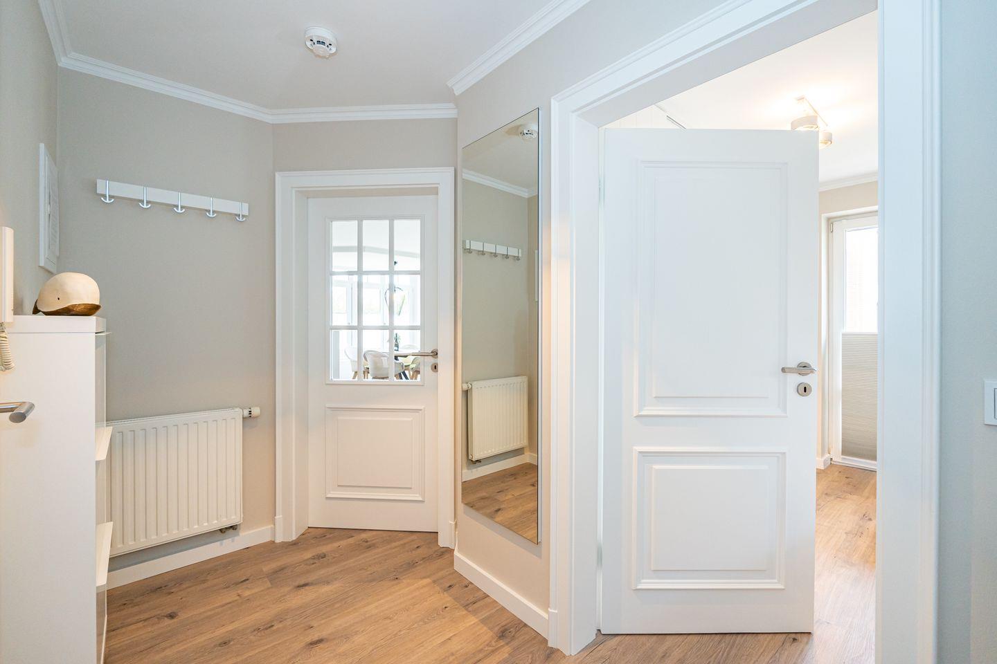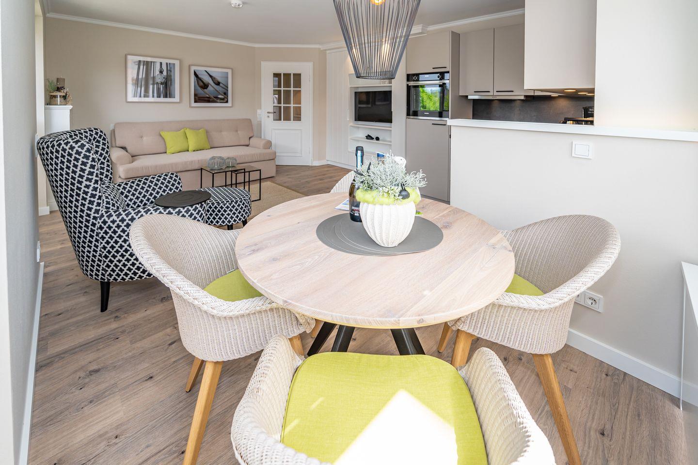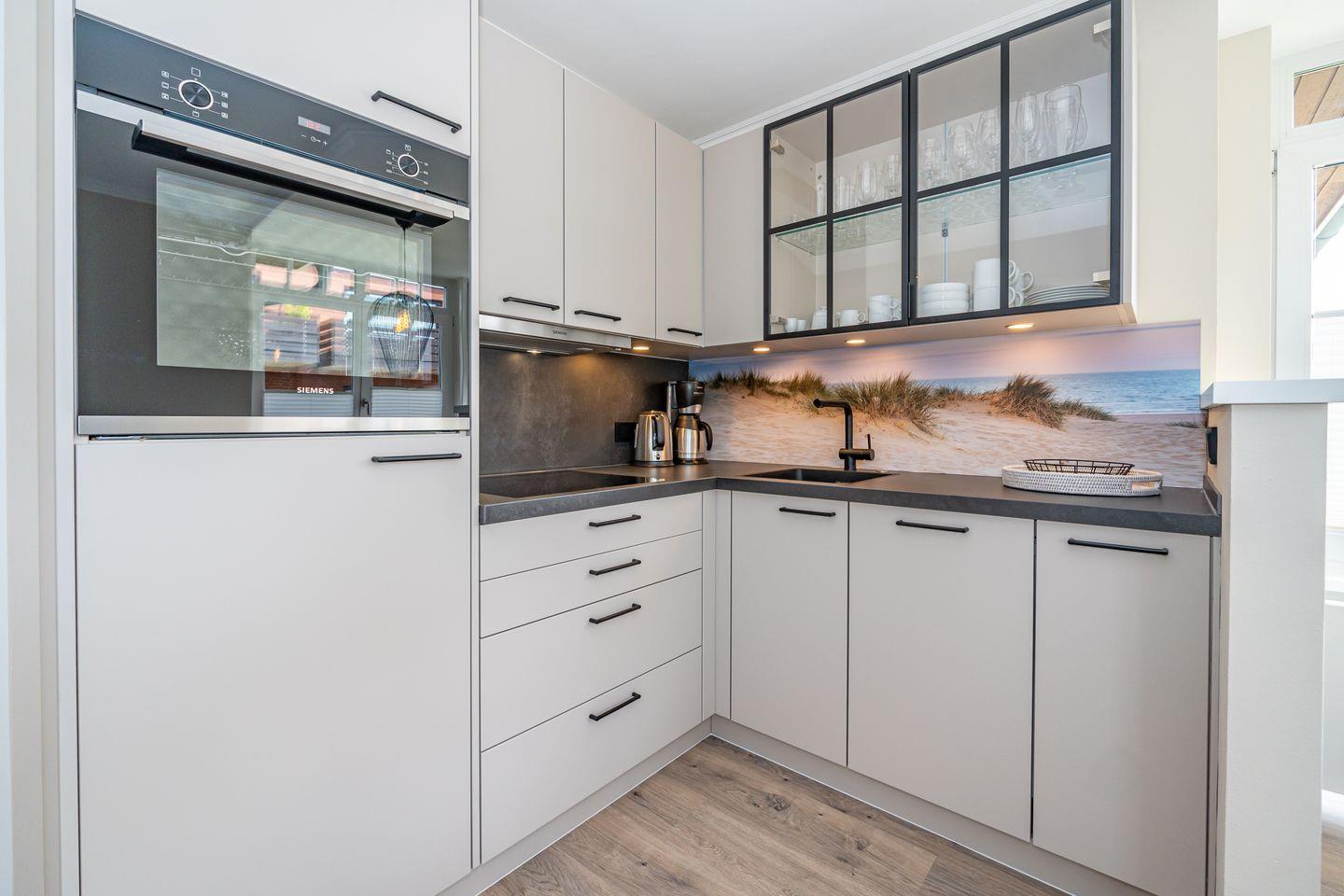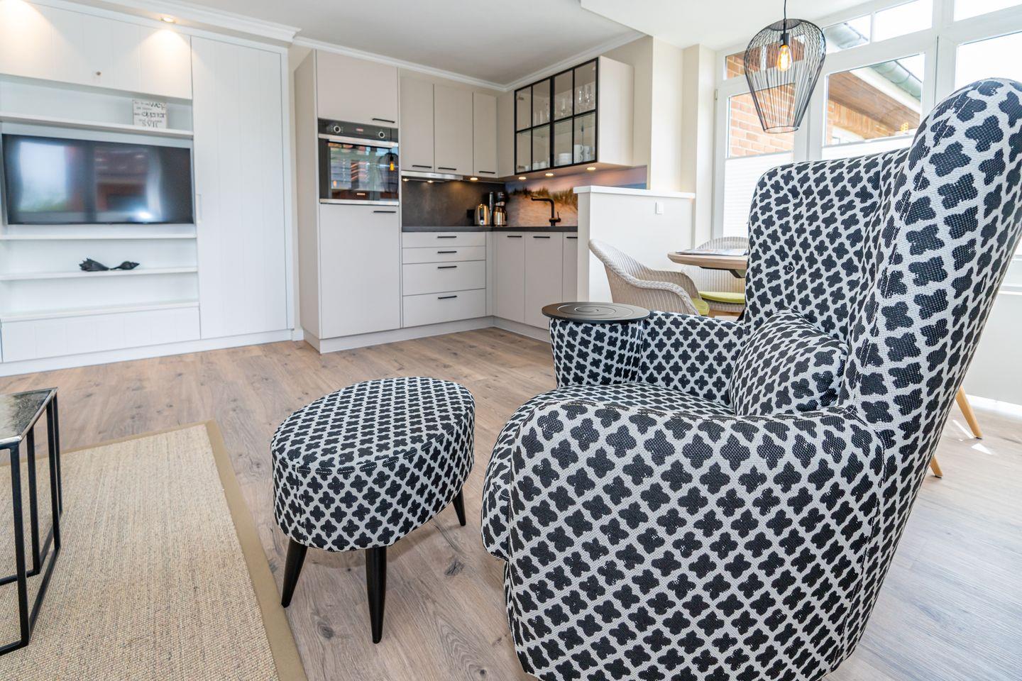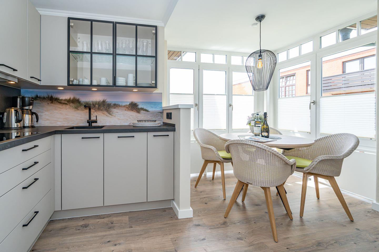Die Ferienwohnung Strandperle begrüßt sie in traumhafter Lage am Wenningstedter Dorfteich und dennoch zentral im Ortskern, unweit von diversen Geschäften. Die Ferienwohnung befindet sich im ersten Obergeschoss und ist mit dem Aufzug oder der Treppe zu erreichen. Es erwartet Sie ein heller Wohn- und Essbereich mit offener voll ausgestatteter Küche (Backofen, Gefrierfach, Toaster, Kaffeefiltermaschine, Nespressomaschine) , Essecke, Design Polstermöbeln und Smart TV. Von hier gelangen Sie auf den Westbalkon mit seitlichen Blick auf den Wenningstedter Dorfteich. Das Schlafzimmer mit hochwertigem Einbau Kleiderschrank, einem weiteren Smart TV, Doppelbett und weiterem Zugang zum Balkon verspricht erholsame Nächte. Außerdem verfügt die Unterkunft über ein Tageslicht Badezimmer mit Regendusche, Waschtisch, Handtuchtrockner und WC.