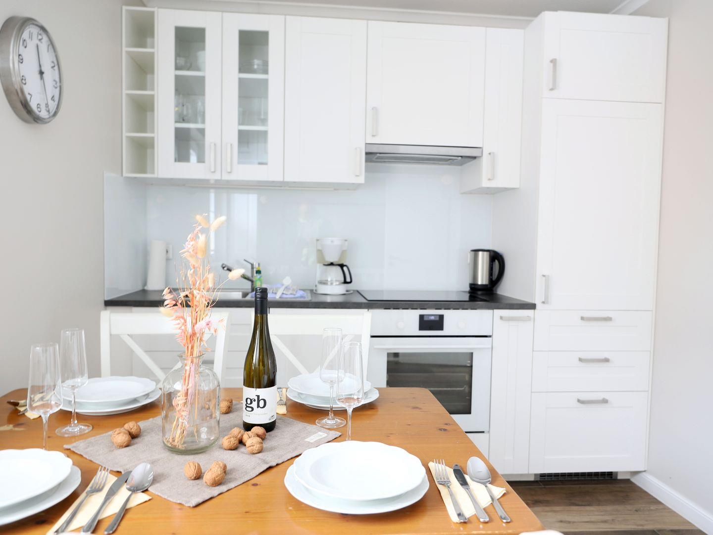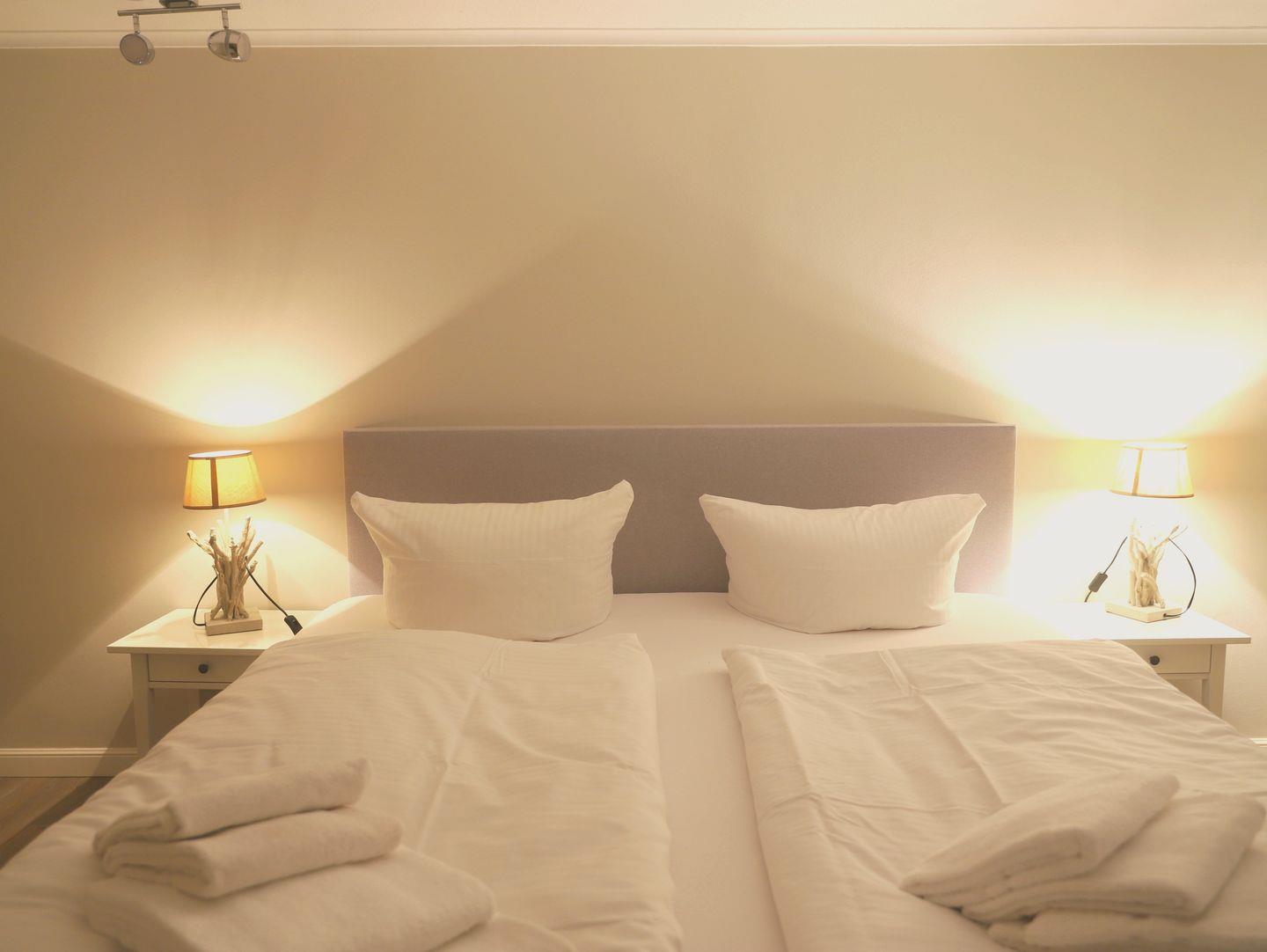 Dieses komfortable 3-Zimmer-Appartement (ca. 65 m²) in Wenningstedt bietet Platz für bis zu 4 Personen und erstreckt sich über zwei Etagen. Das Erdgeschoss verfügt über ein gemütliches Wohnzimmer mit Sitzecke, Kabel-TV und Stereoanlage. Die moderne Küchenzeile mit Geschirrspüler und Essplatz lädt zu gemeinsamen Mahlzeiten ein. Ein Duschbad rundet das Angebot im Erdgeschoss ab. Im Untergeschoss, das über eine etwas steile Treppe erreichbar ist, befinden sich zwei Schlafzimmer: eins mit einem Doppelbett (180 x 200 cm) und ein weiteres mit zwei Einzelbetten (90 x 200 cm). Ein zusätzliches Duschbad sorgt für Komfort. Genießen Sie entspannte Stunden auf der Nord-West-Terrasse mit Gartentisch und Stühlen. Ein kostenfreier PKW-Stellplatz steht zur Verfügung. Fahrradständer sind vorhanden, jedoch ohne garantierten Stellplatz. Haustiere sind nicht gestattet.