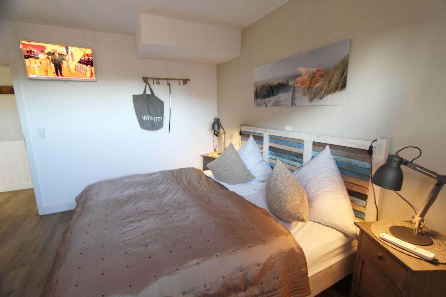 Die Ferienwohnung verfügt über zwei Schlafzimmer, die jeweils mit einem Doppelbett ausgestattet sind. In jedem Schlafzimmer gibt es einen kleinen Fernseher.