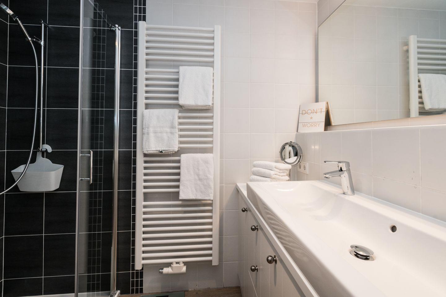 Die beiden Schlafzimmer befinden sich im Untergeschoss der Wohnung und sind jeweils mit komfortablen Doppelbetten (180 × 200 cm) ausgestattet. Beide Schlafzimmer verfügen über eigene Fernseher und wurden mit hochwertigen Tischlereinbauten gestaltet, die für ein besonders harmonisches Ambiente sorgen.