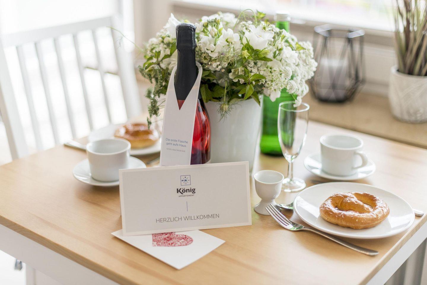 Die separate Einbauküche ist modern ausgestattet und verfügt über ein Kochfeld, einen Backofen, eine Mikrowelle sowie alle notwendigen Küchenutensilien. Hier können Sie bequem kleine Mahlzeiten zubereiten und Ihren Tag kulinarisch genießen.