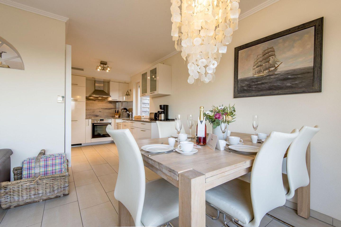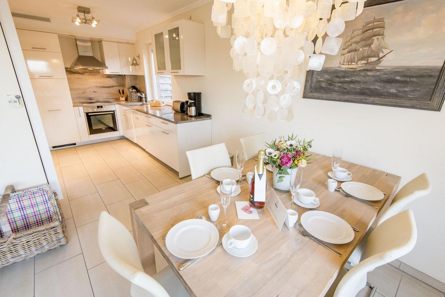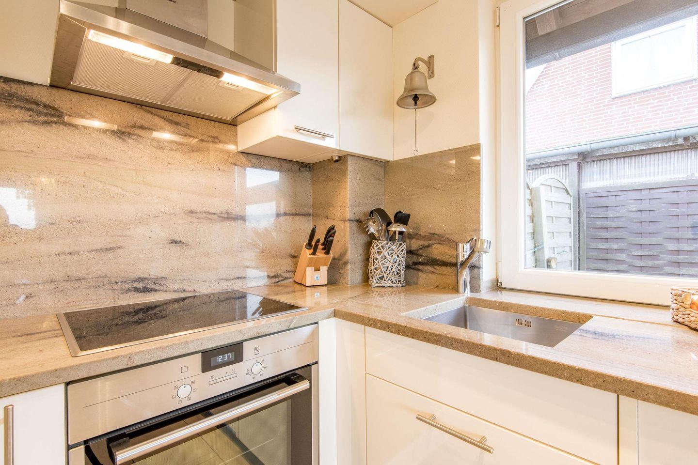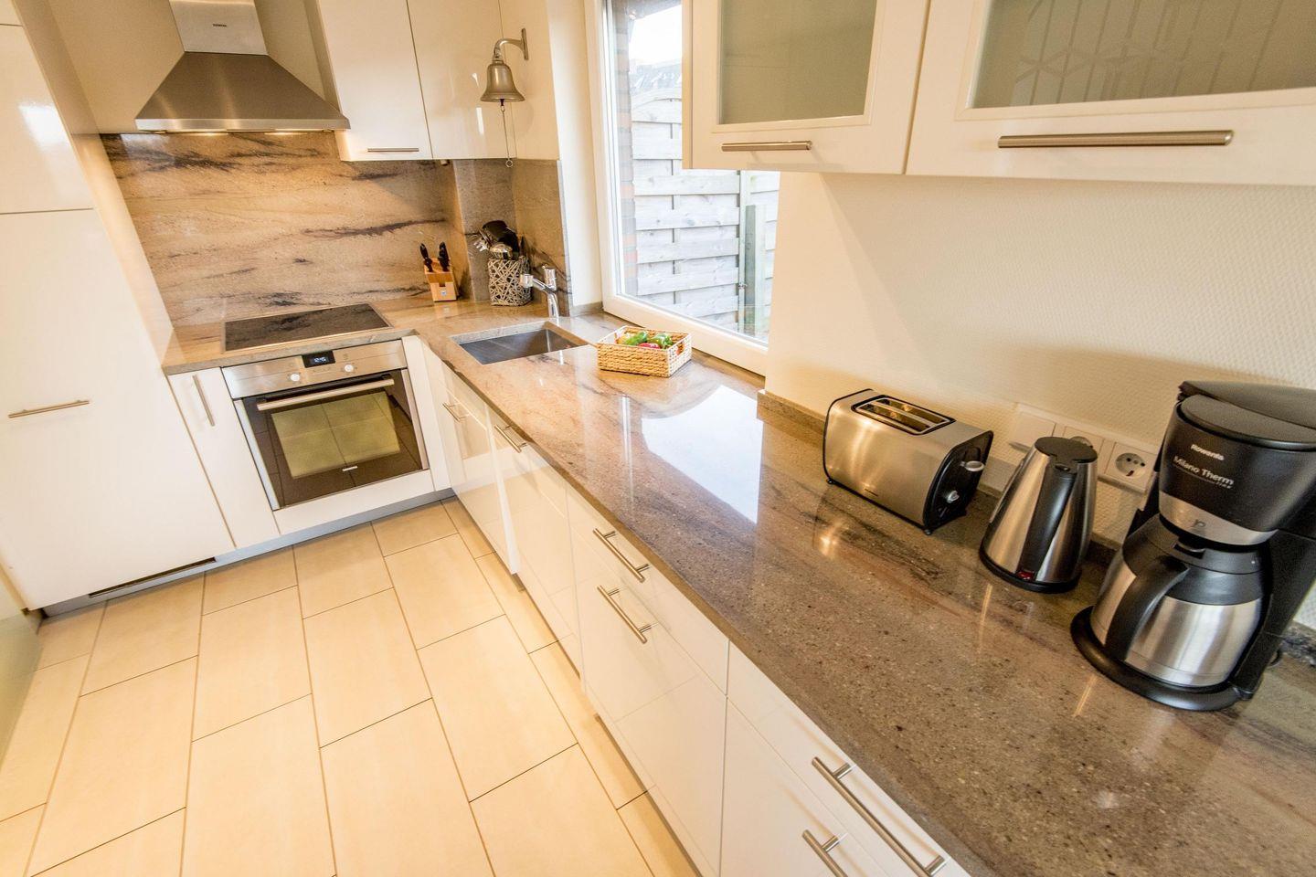 Die offene Küche ist voll ausgestattet und bietet modernen Komfort für Ihre Mahlzeiten. Zur Ausstattung gehören ein Backofen, eine Filterkaffeemaschine, ein Geschirrspüler und vieles mehr, damit Sie sich wie zu Hause fühlen.
