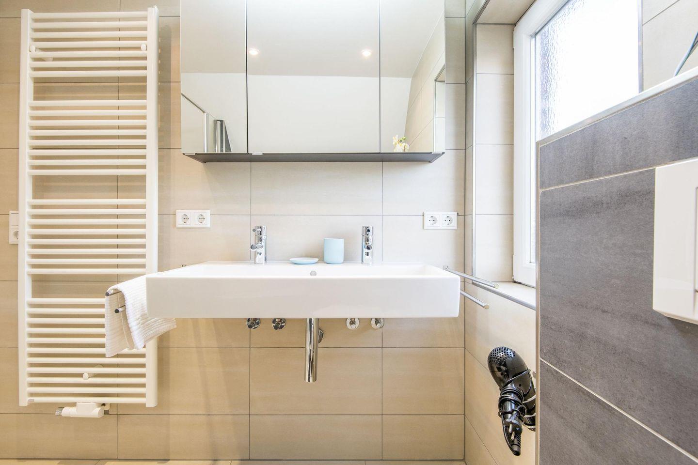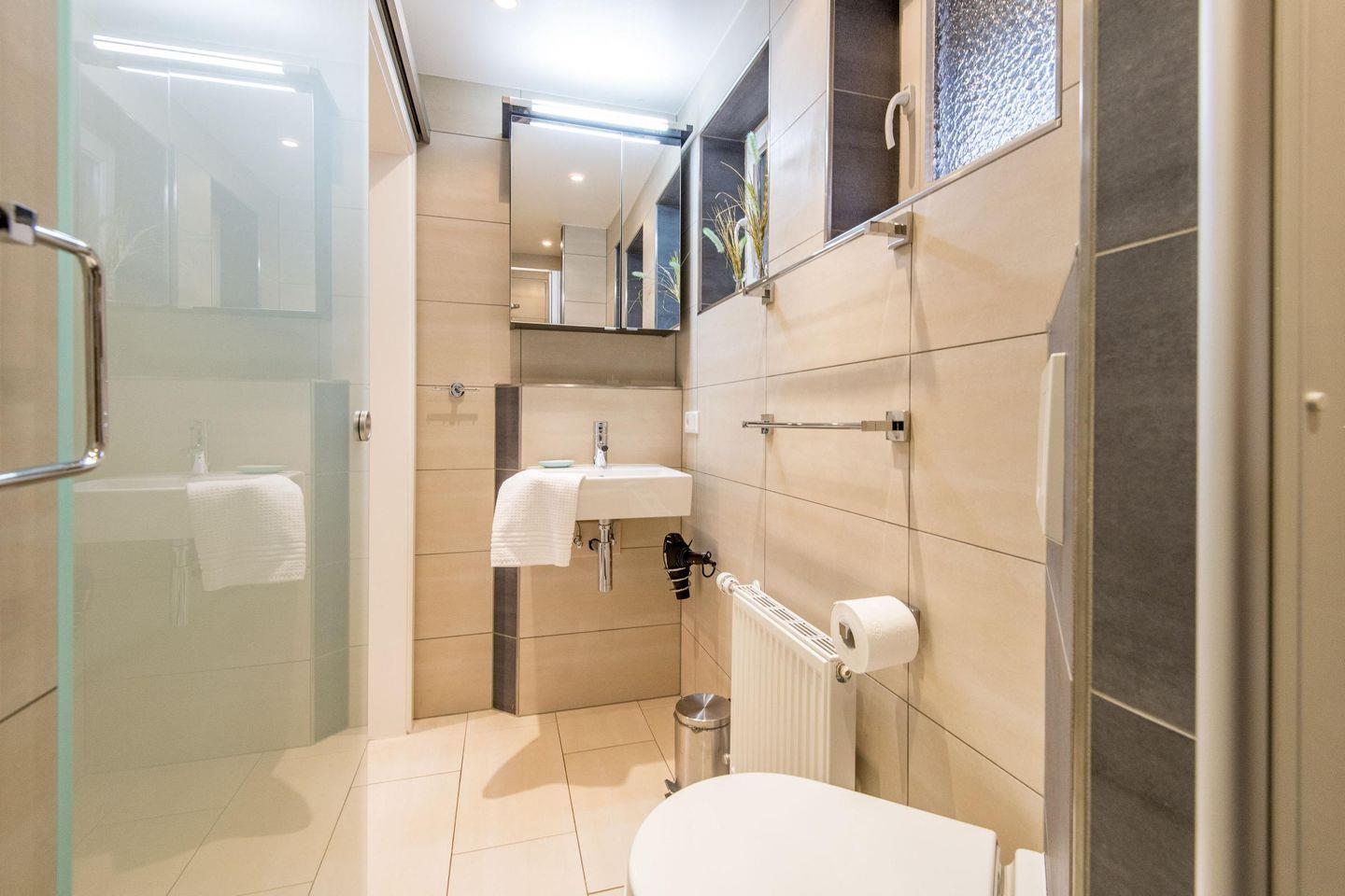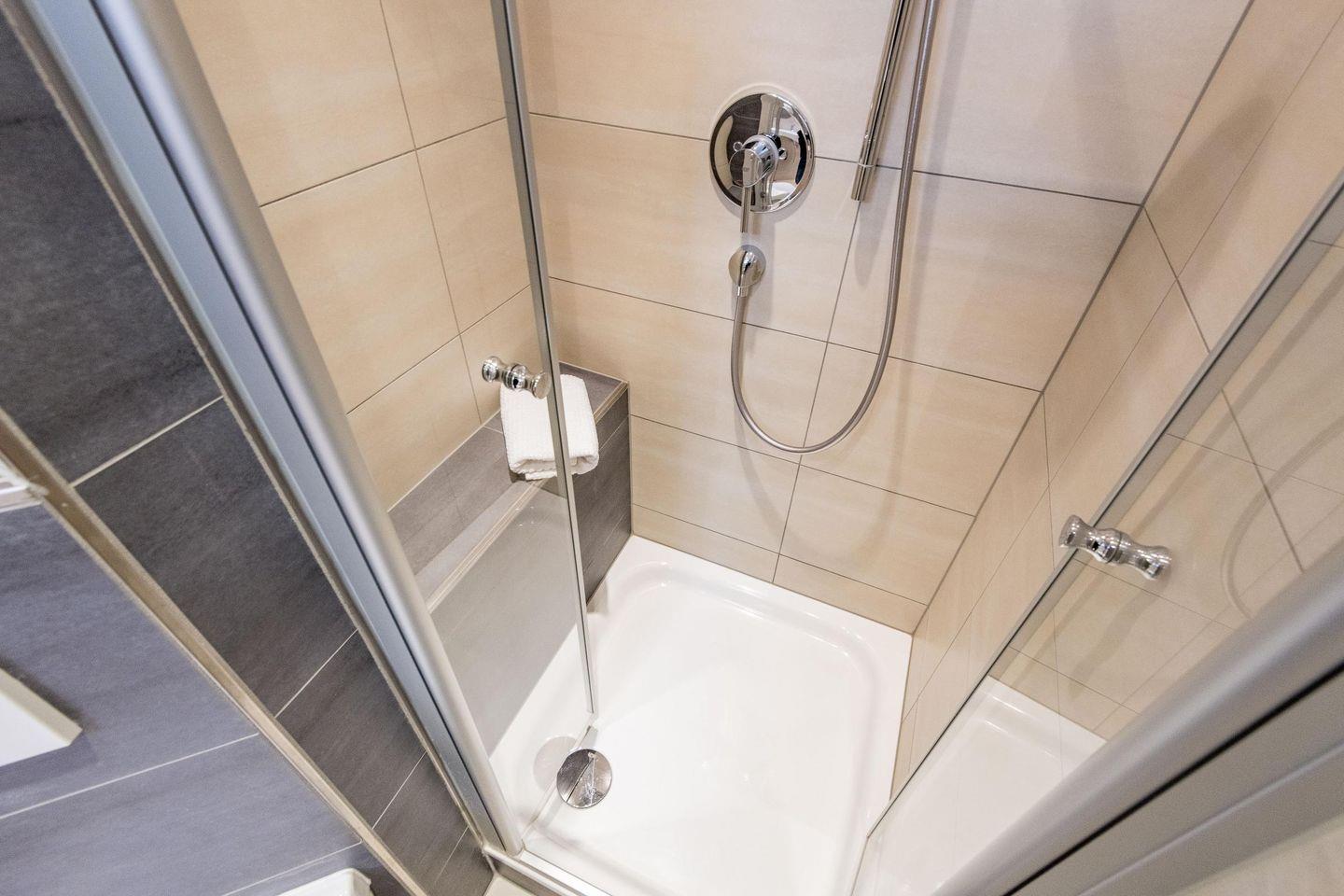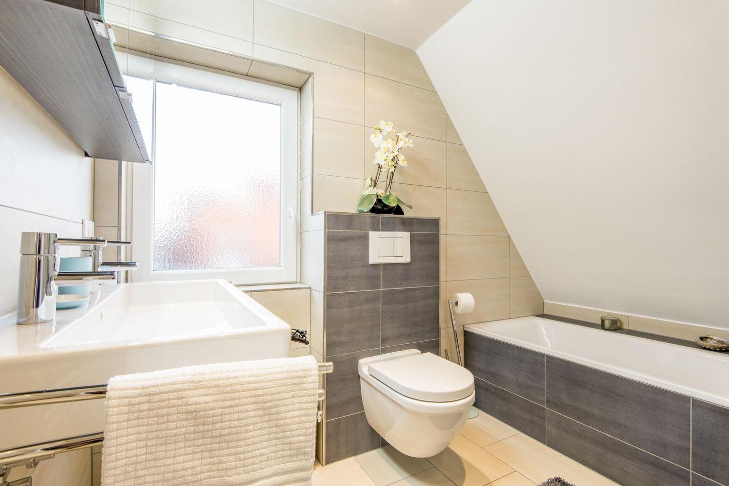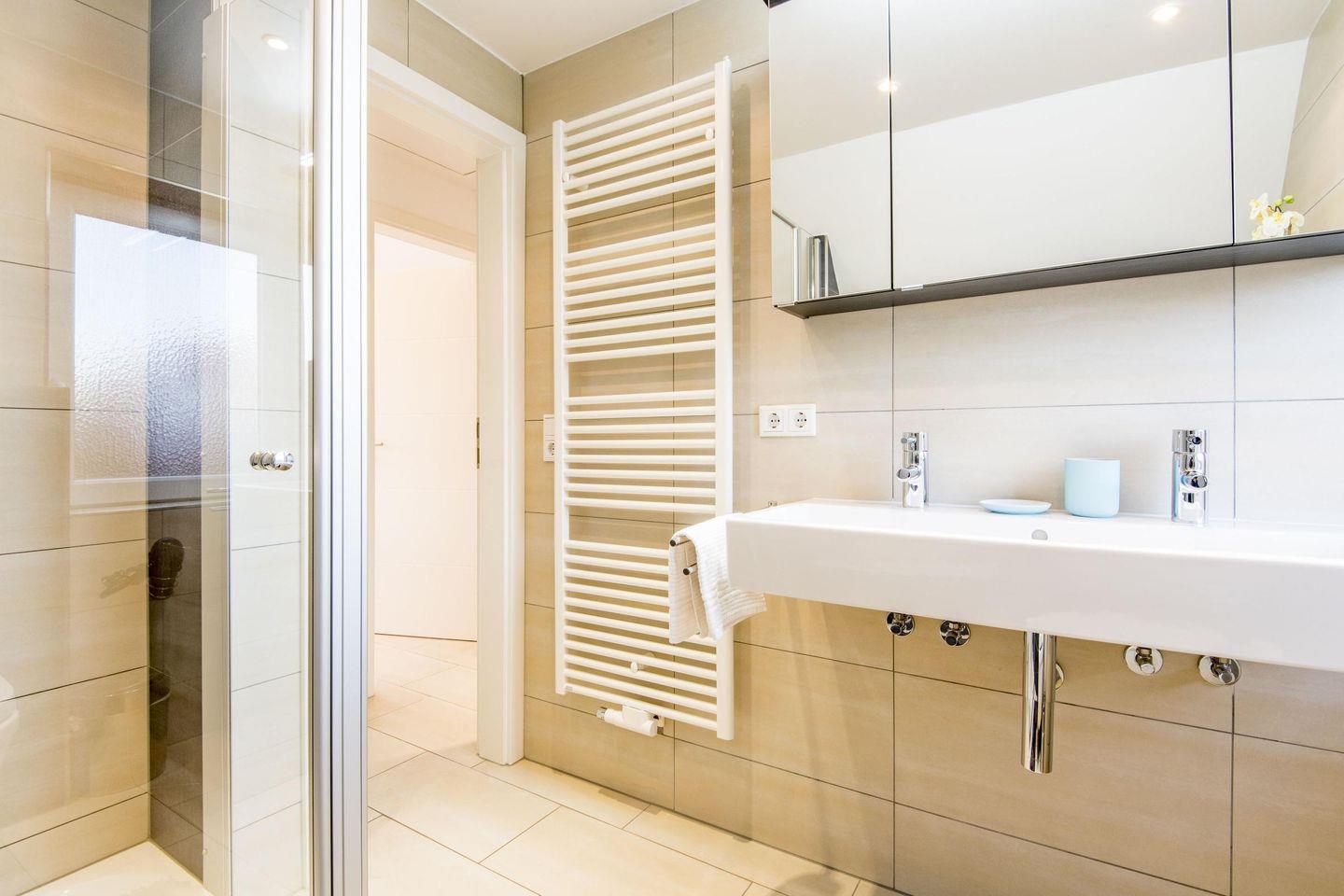 Das erste Badezimmer bietet eine Dusche, WC und Tageslicht, während das zweite Badezimmer mit einer Badewanne und einer Dusche ausgestattet ist – perfekt für entspannende Momente nach einem erlebnisreichen Tag.